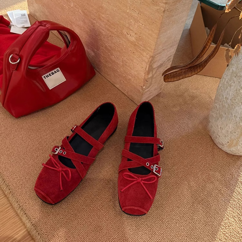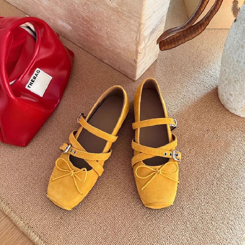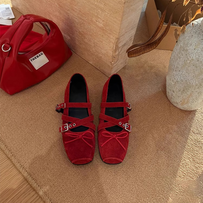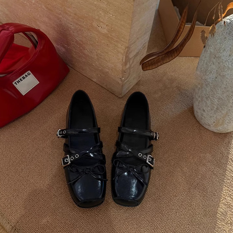 内增高方头蝴蝶结皮带扣浅口玛丽珍单鞋女2026春新款软底芭蕾舞鞋
