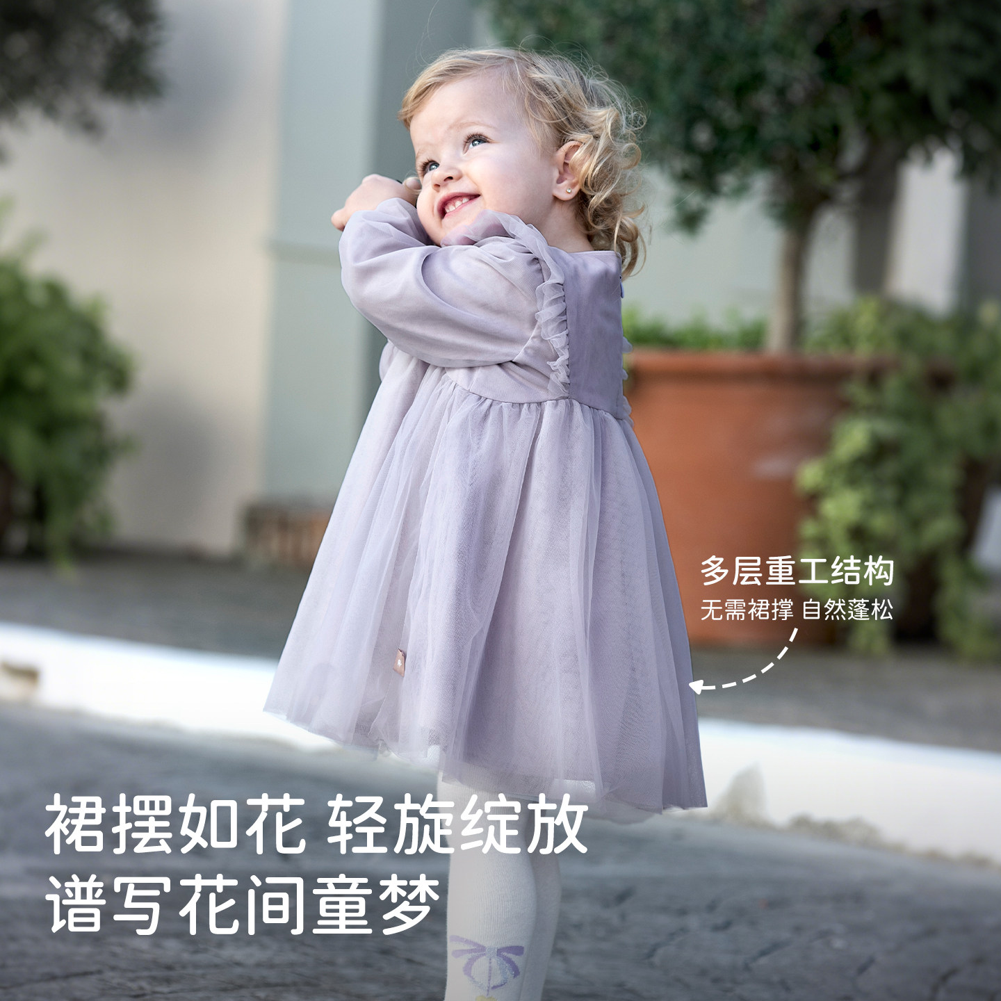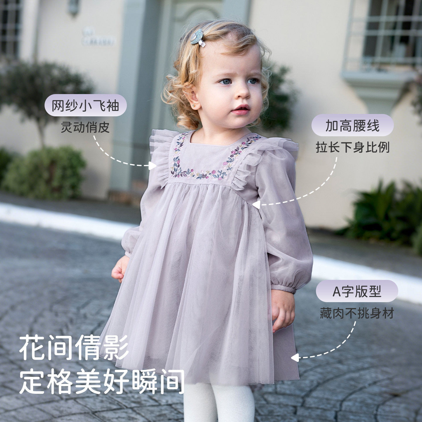 311线报网描述:柔软全棉里衬 叠层网纱裙摆 优雅花朵刺绣