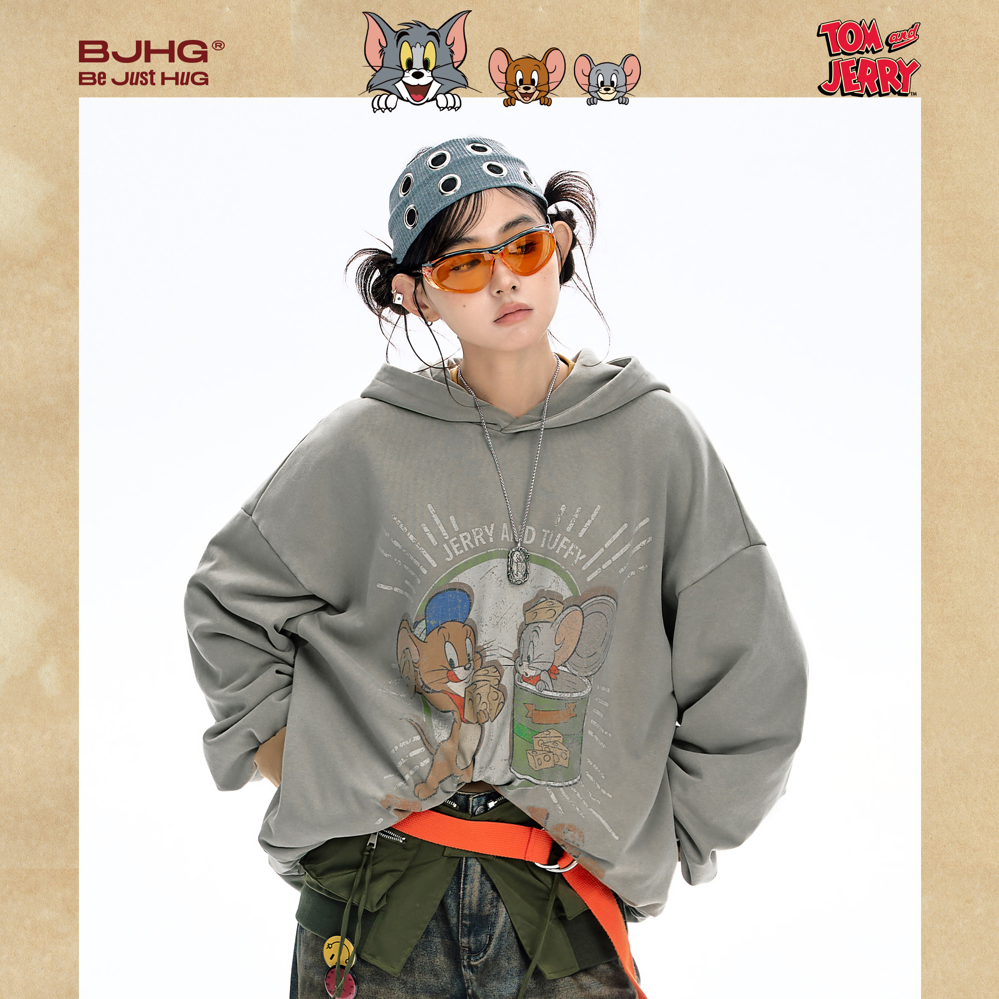 【猫和老鼠联名】BJHG不计后果美式连帽卫衣男款春秋季潮牌外套女