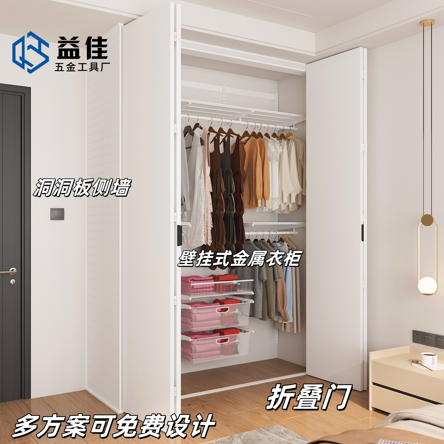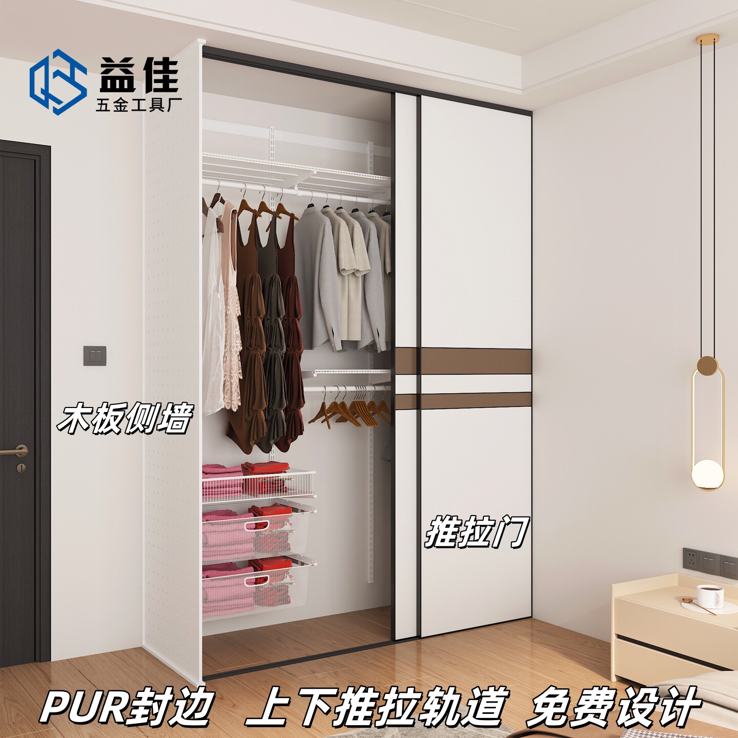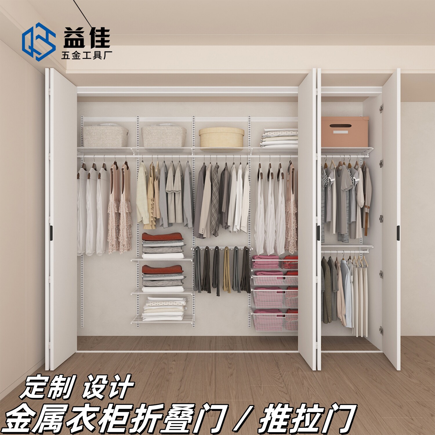 金属衣柜推拉门折叠门玻璃门定制卧室衣帽储物间800库简约移动门