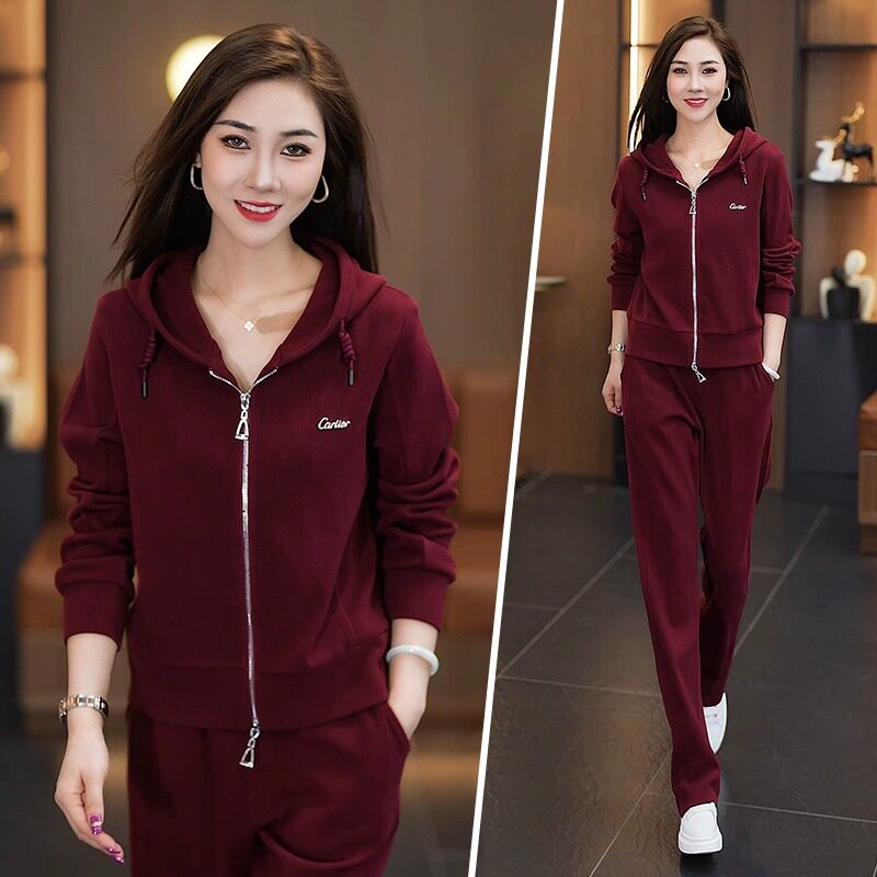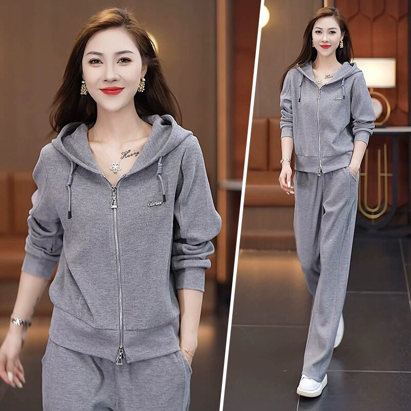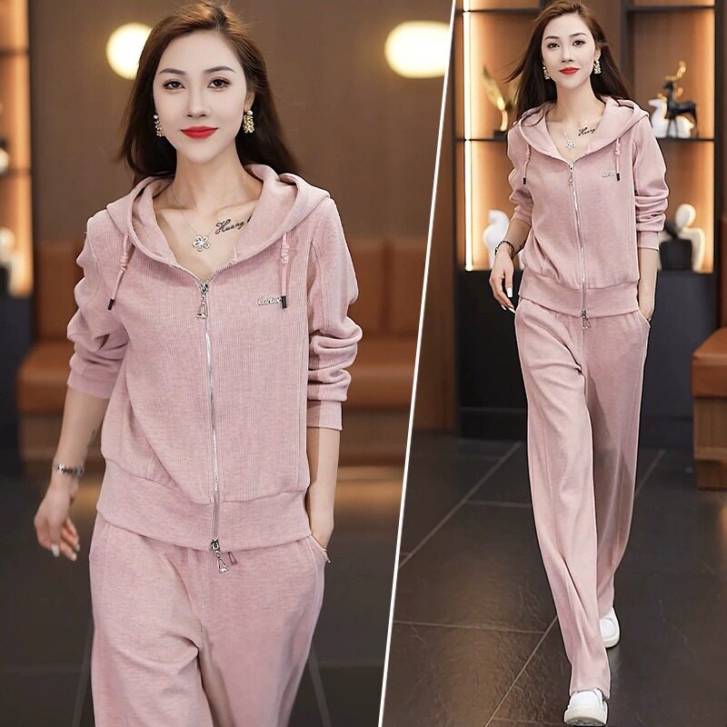 新款春秋运动套装女洋气减龄时尚连帽卫衣小个子休闲跑步服两件套