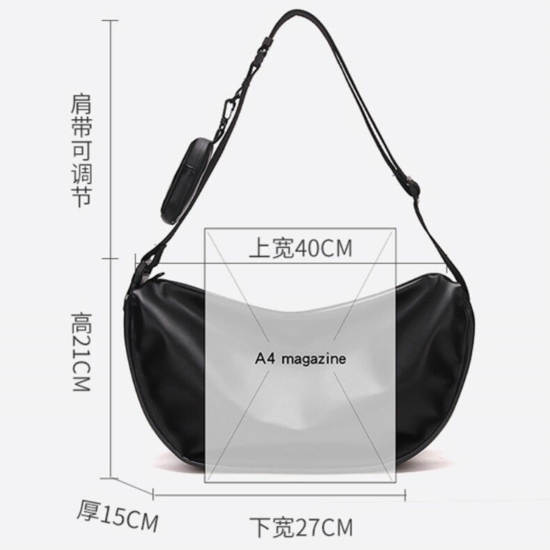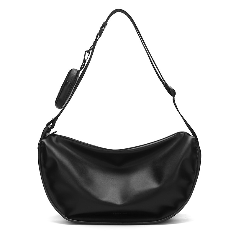 2026新款休闲简约风黑色PU饺子包男女斜挎包大容量时尚通勤单肩包