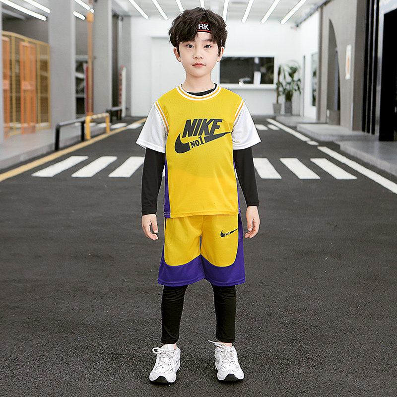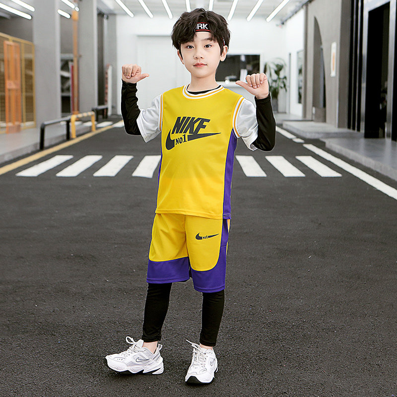 儿童紧身衣训练服男童秋冬长袖套装篮球足球运动速干衣打底健身服