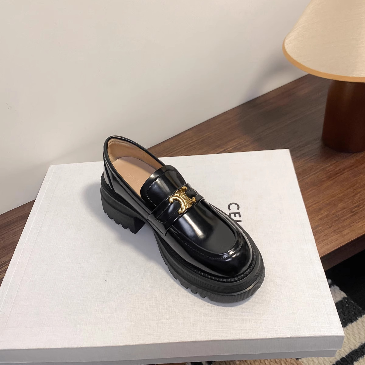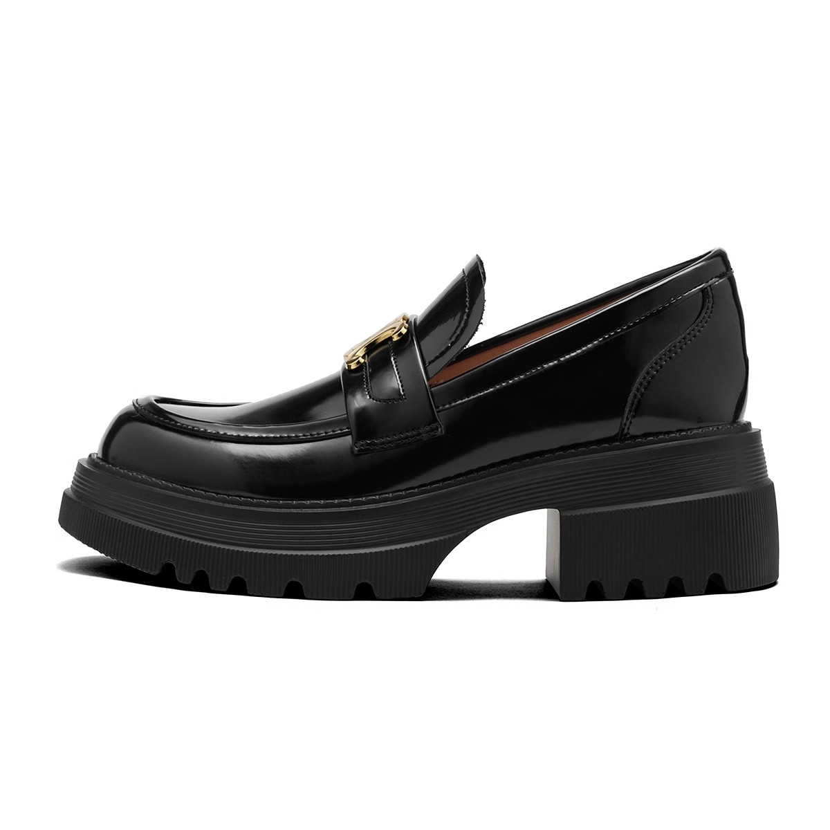 香港厚底乐福鞋英伦风凯旋门小皮鞋女粗跟增高鞋一脚蹬真皮单鞋子