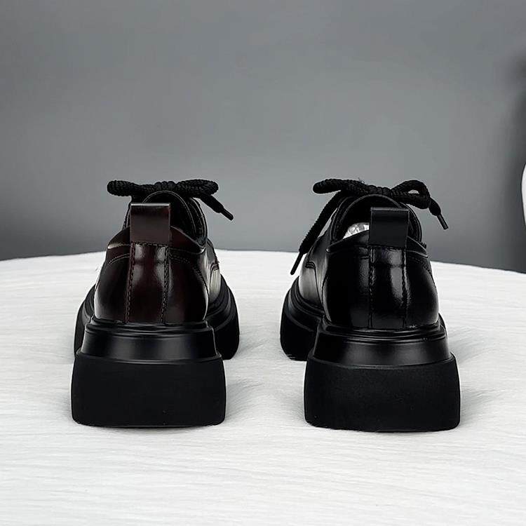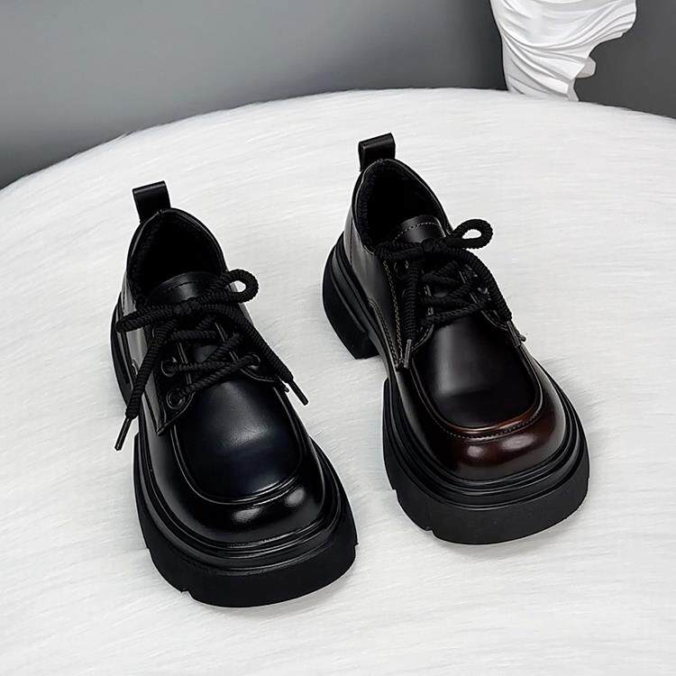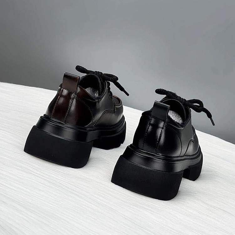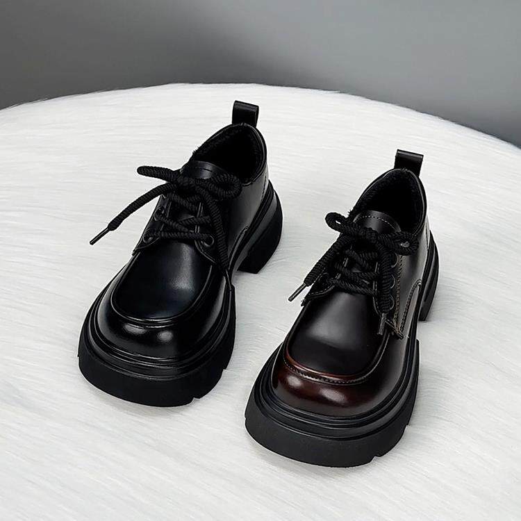 香港真皮厚底乐福鞋女秋季2025新款爆款英伦风小皮鞋系带增高单鞋