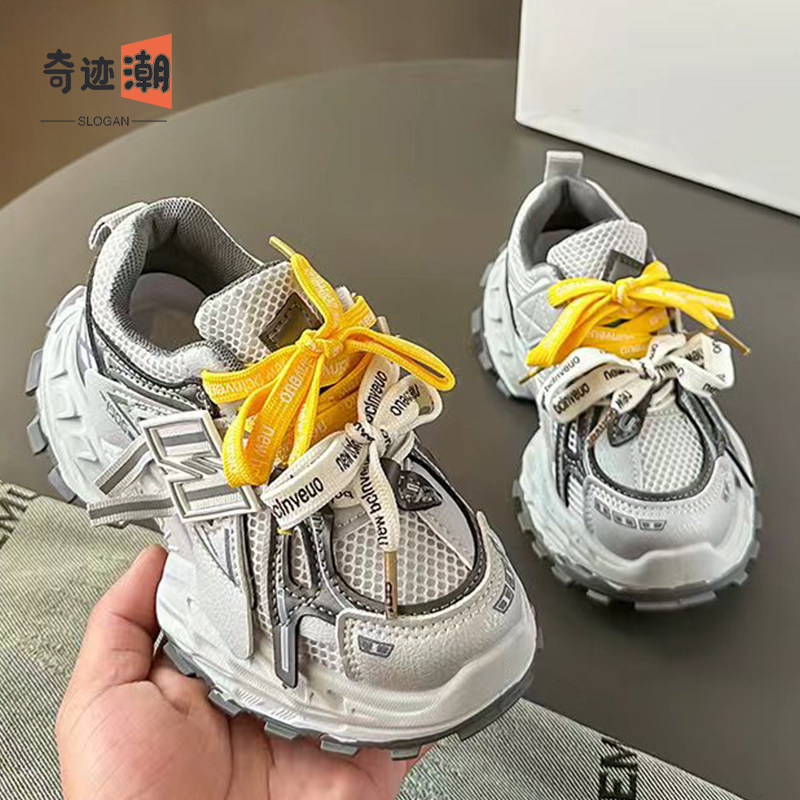 男童鞋子2026新款春秋炸街儿童跑步运动鞋男孩网面透气老爹鞋爆款
