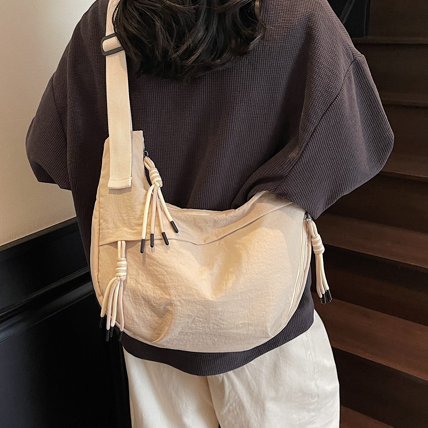 尼龙饺子包女斜挎包2026新款春夏休闲单肩背包大容量运动轻便小包
