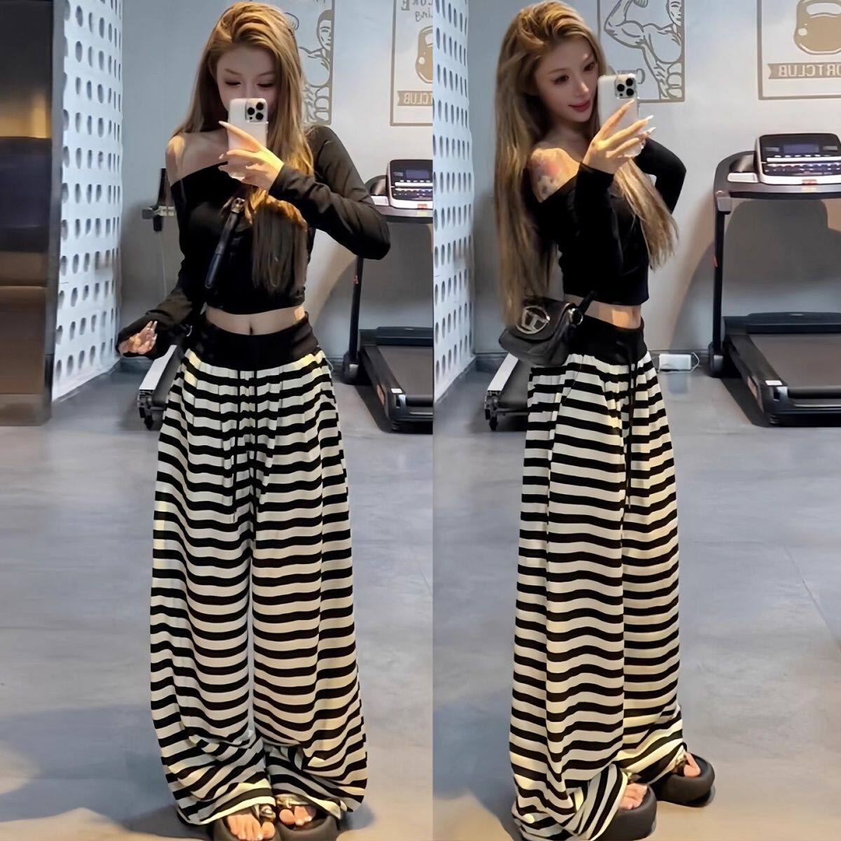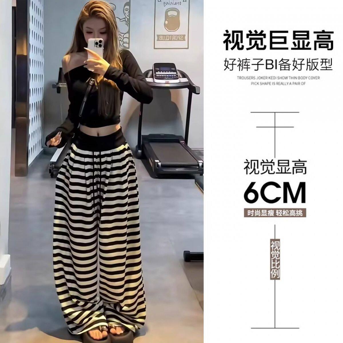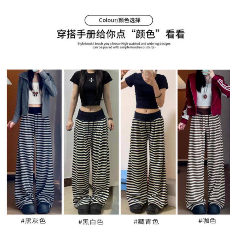 今年流行爆款2026夏季新款高腰条纹休闲裤女阔腿裤百搭显瘦长裤子