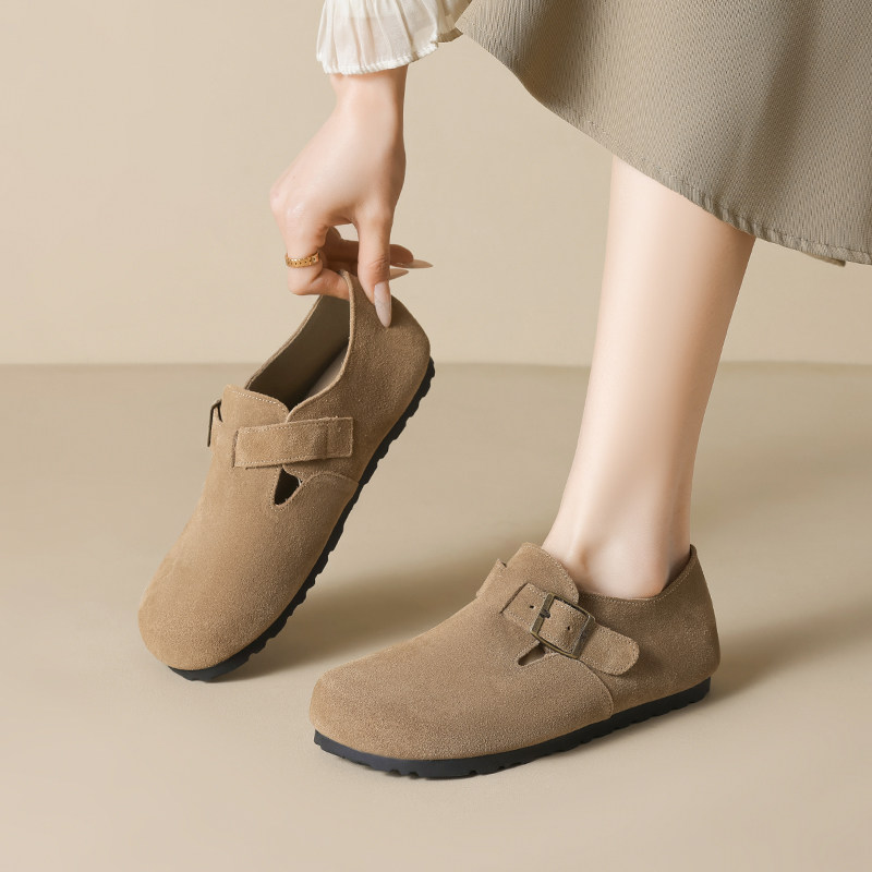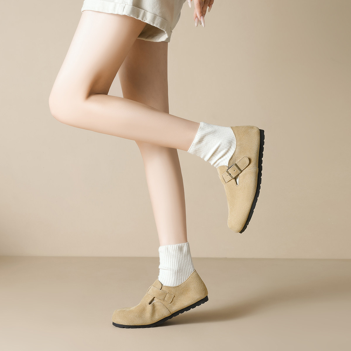 米霏~真皮全包勃肯鞋女2026春季新款厚底博肯单鞋大码女鞋41到43