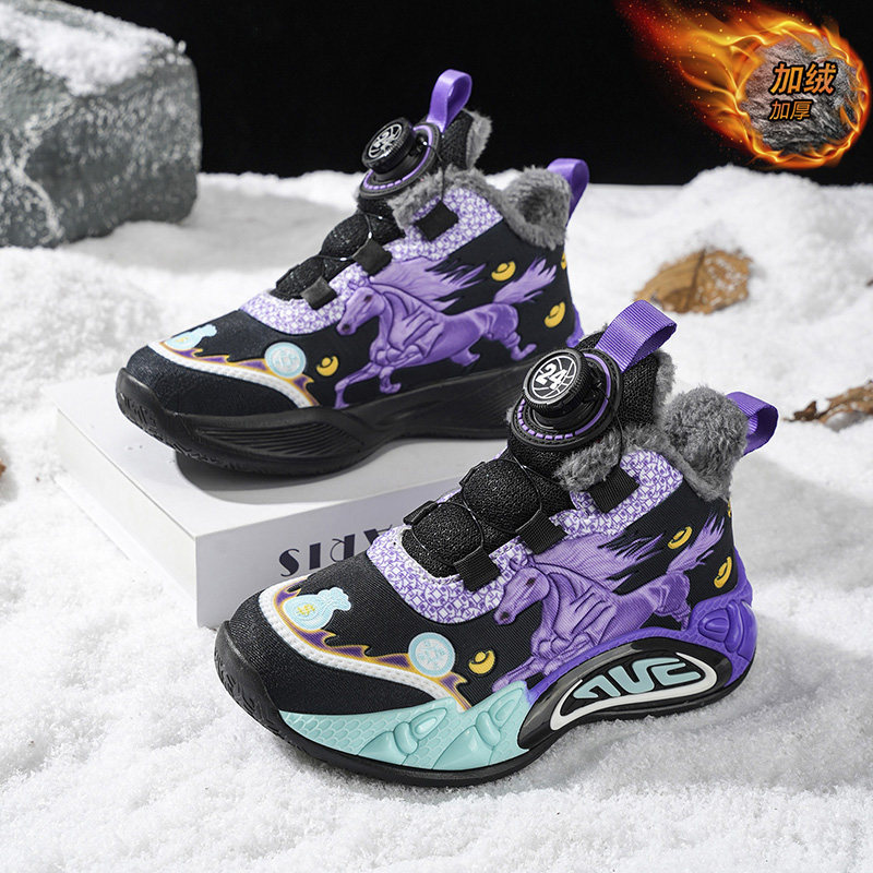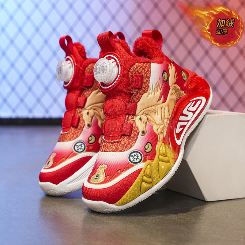 奥特莱斯折扣新年红色童鞋男童本命年鞋子冬季加绒保暖运动鞋男孩
