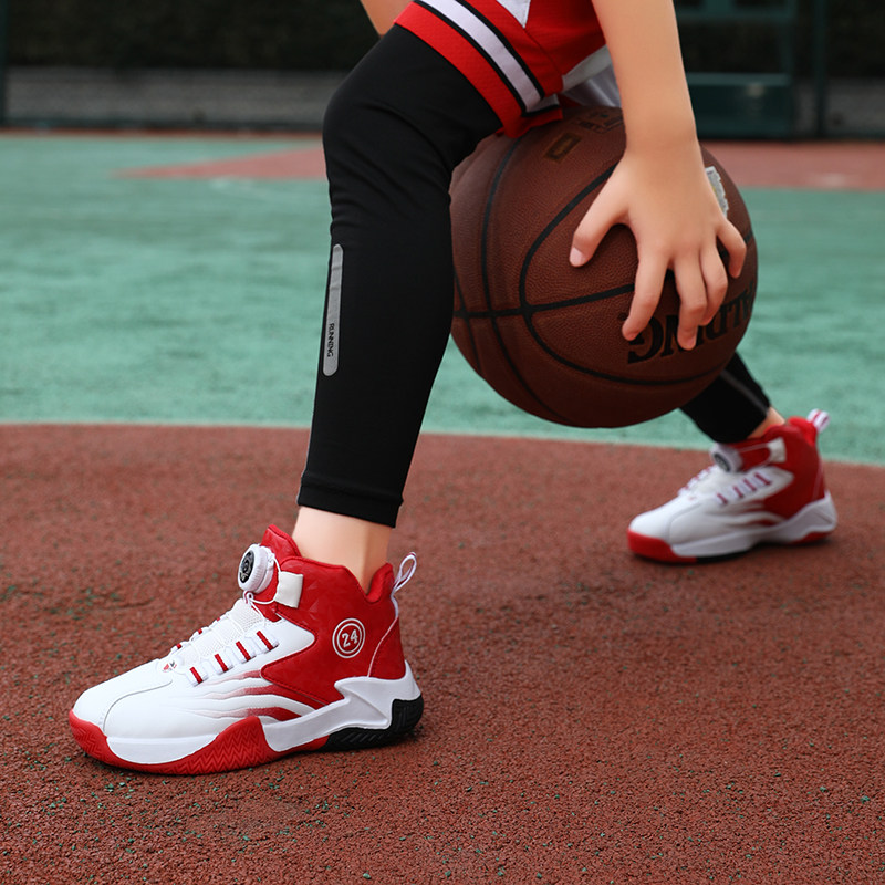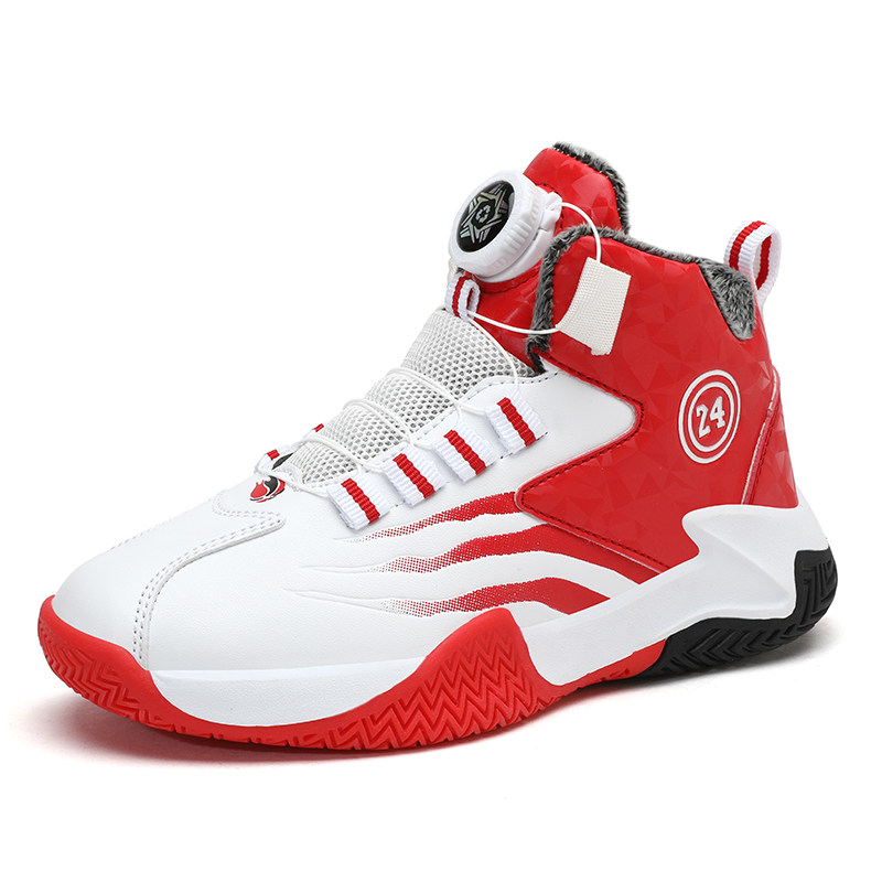 儿童旋钮鞋红色童鞋男童篮球鞋秋冬加绒新年鞋子本命年男孩运动鞋