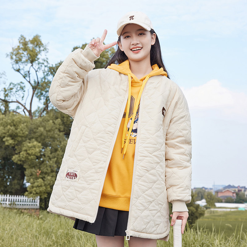 少女棉衣加厚外套初中生学生冬装羽绒棉服学院风休闲百搭立领棉袄