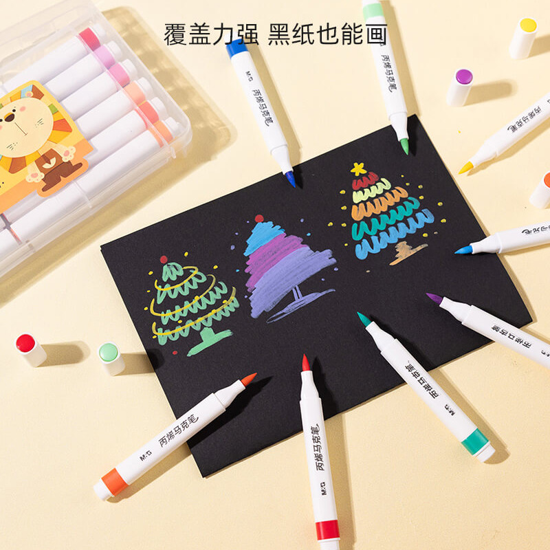 晨光丙烯马克笔12/24/36/48色儿童学生不透色软头绘画笔APMU5223