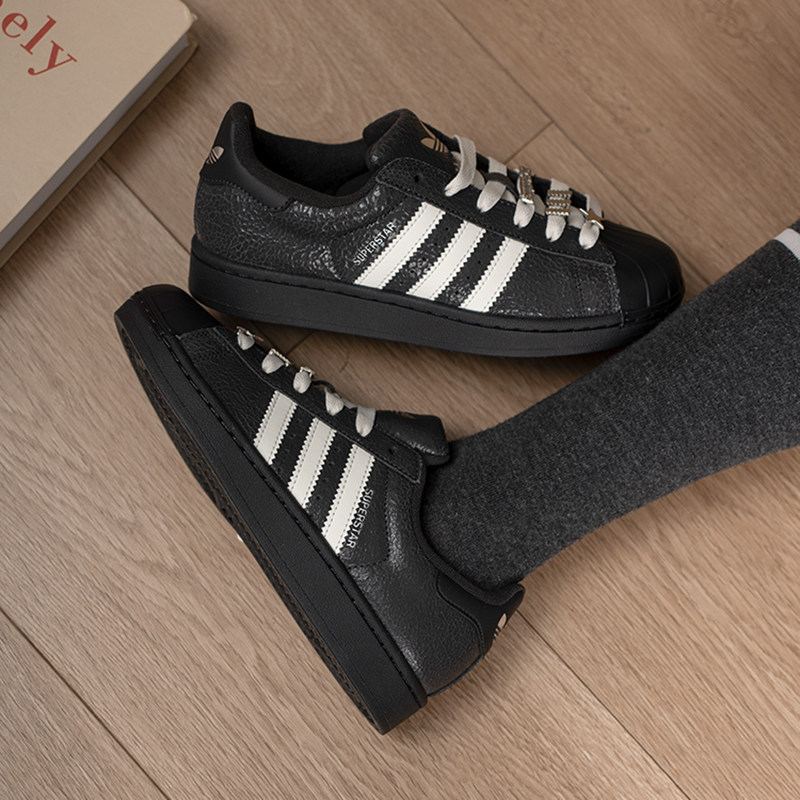 阿迪达斯三叶草女鞋2026春季新款黑色低帮运动鞋贝壳头板鞋IH1628