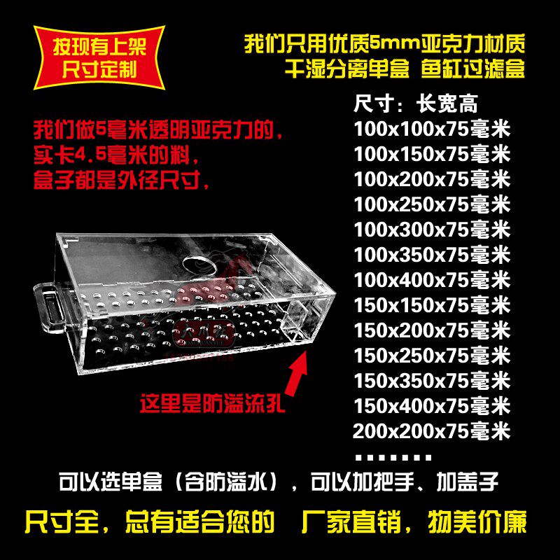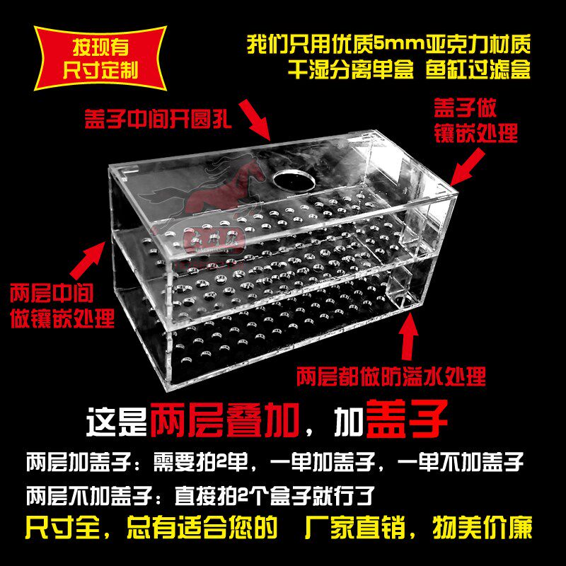 定制亚克力鱼缸过滤盒干湿分离盒滴流盒上滤下滤定做亚克力过滤盒
