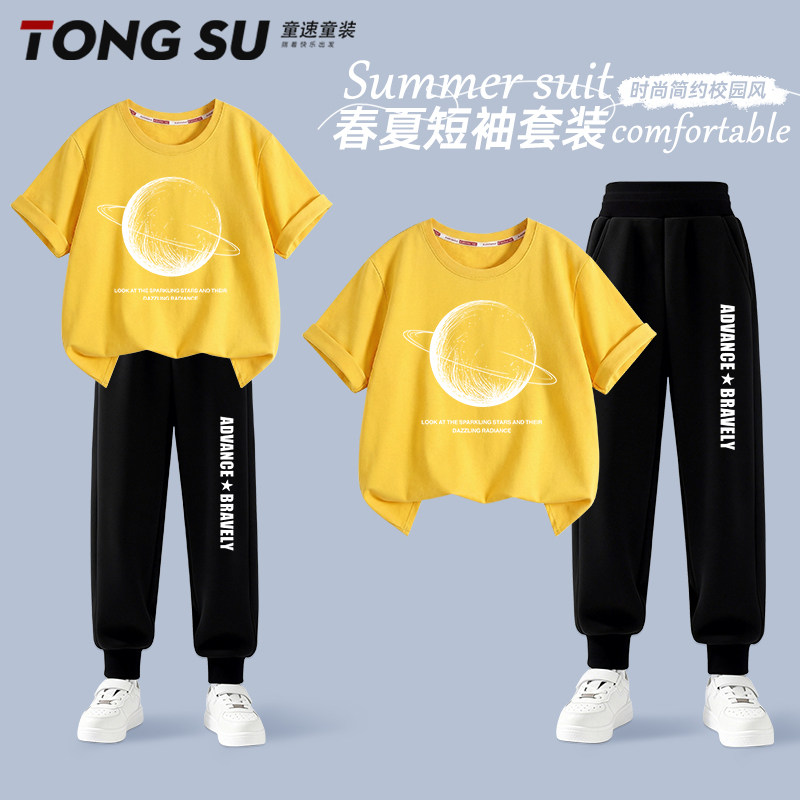 男童夏季套装2026新款薄款痞帅风男孩短袖t恤休闲两件套儿童夏装