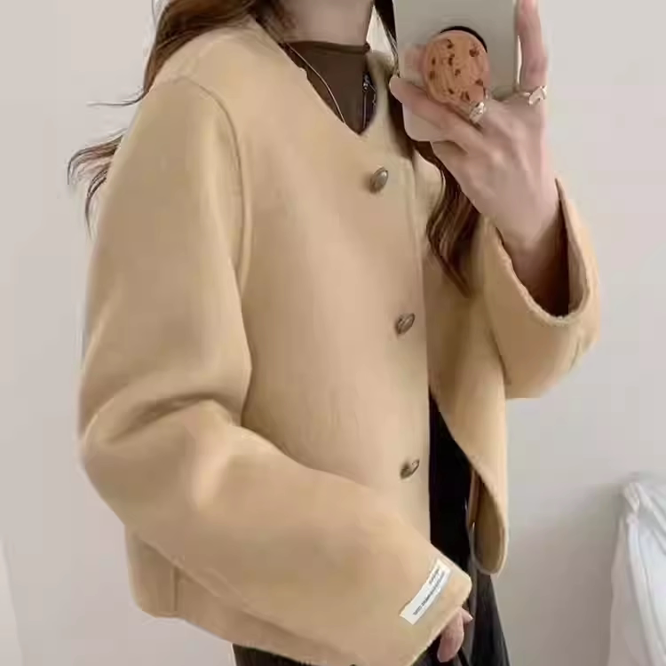 2026年小香风双面羊绒大衣女短款气质韩版圆领羊毛呢外套百搭新款