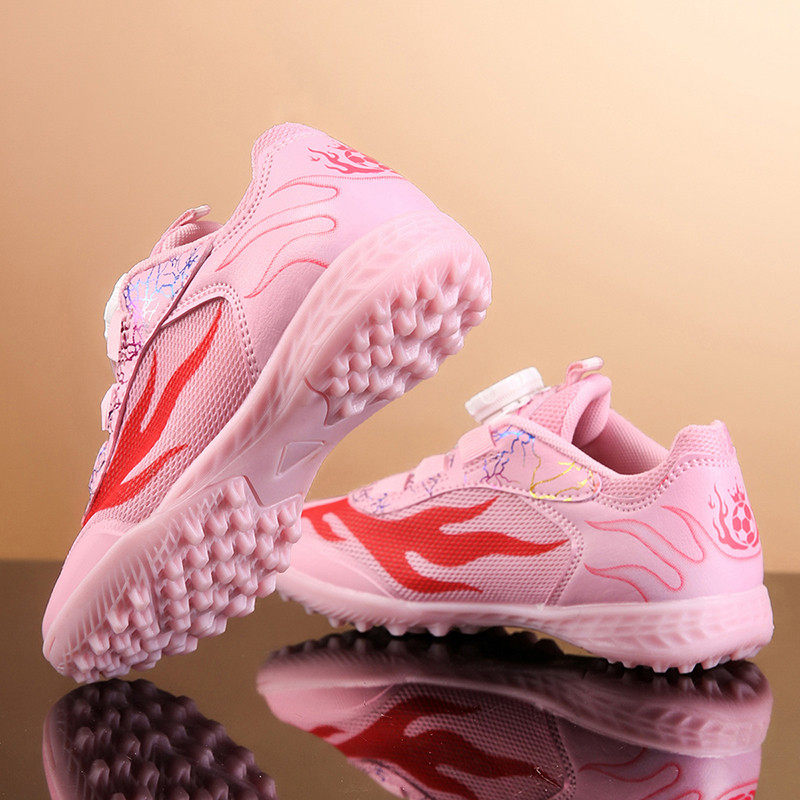 2025夏季新款女孩童足球鞋网面透气碎钉TF小学生男童魔术贴训练鞋
