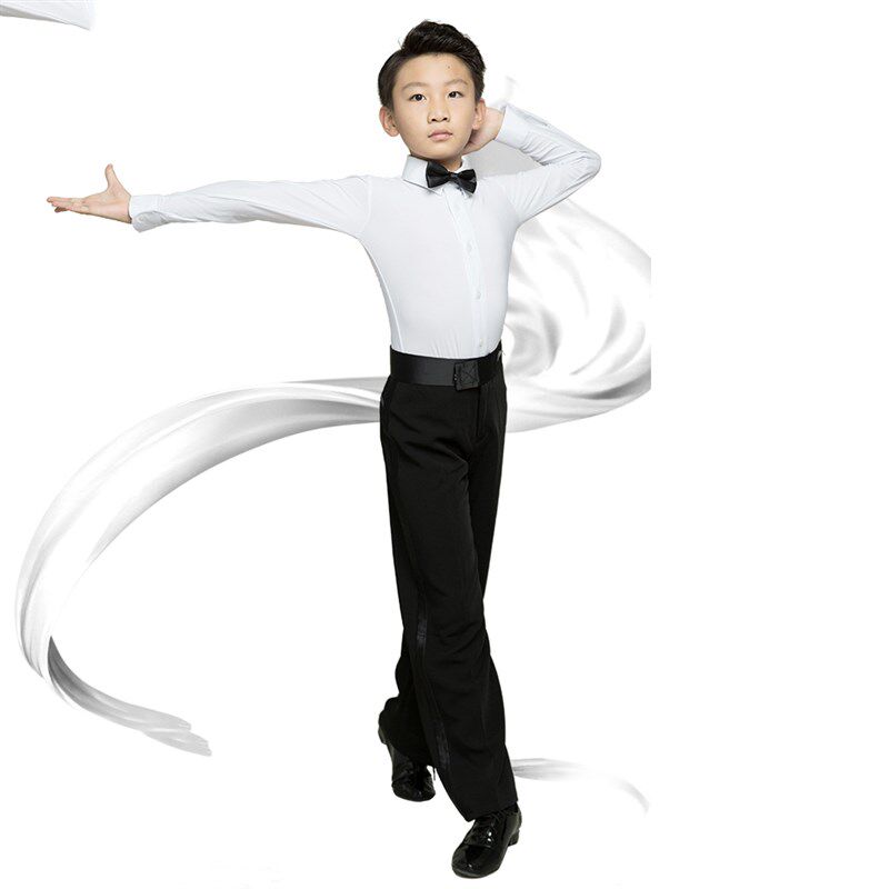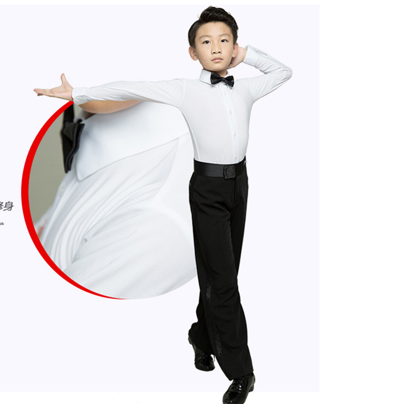 少儿男童拉丁舞比赛服衬衣连档配领结比赛服规定服表演服长袖