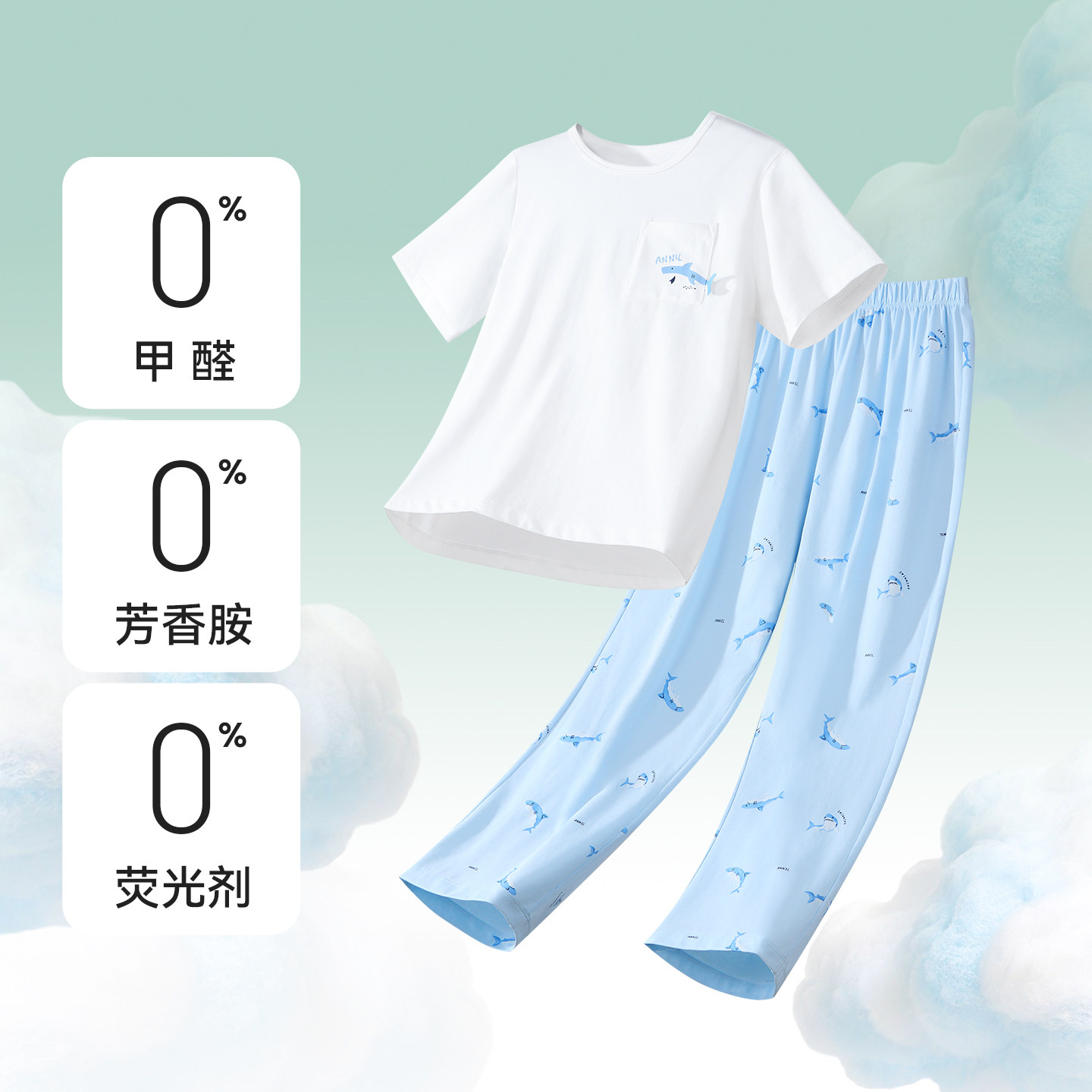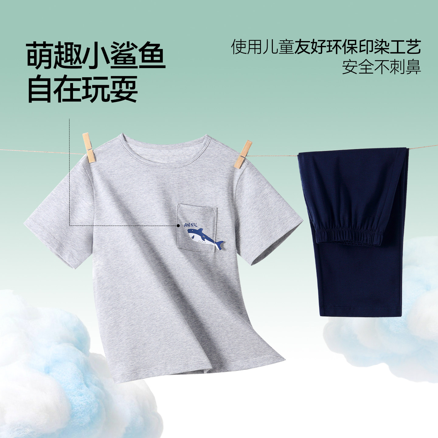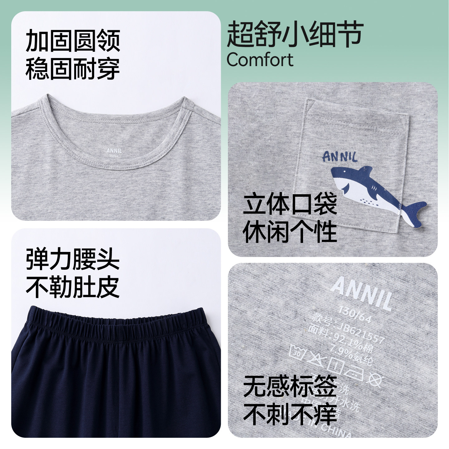 安奈儿童装男童圆领短袖长裤家居套装2026夏新款弹力休闲睡衣睡裤