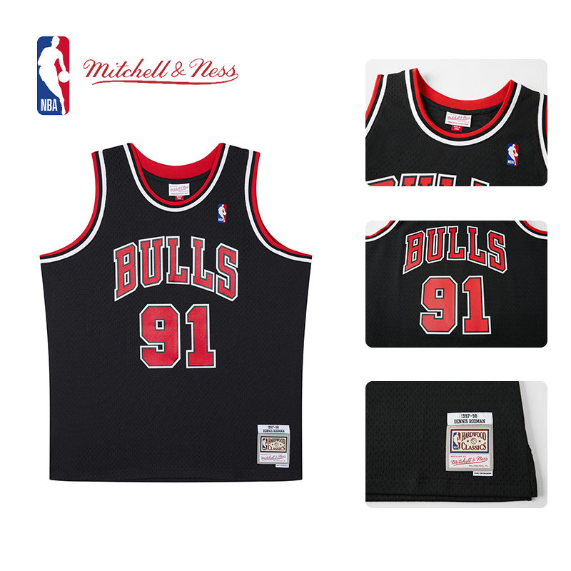 Mitchell&Ness-NBA官方复古球衣SW公牛队罗德曼97-98赛季篮球服