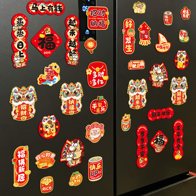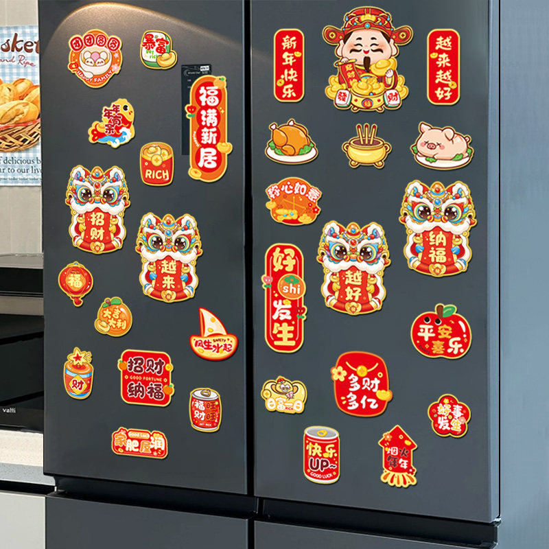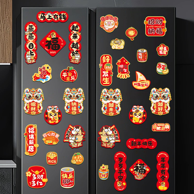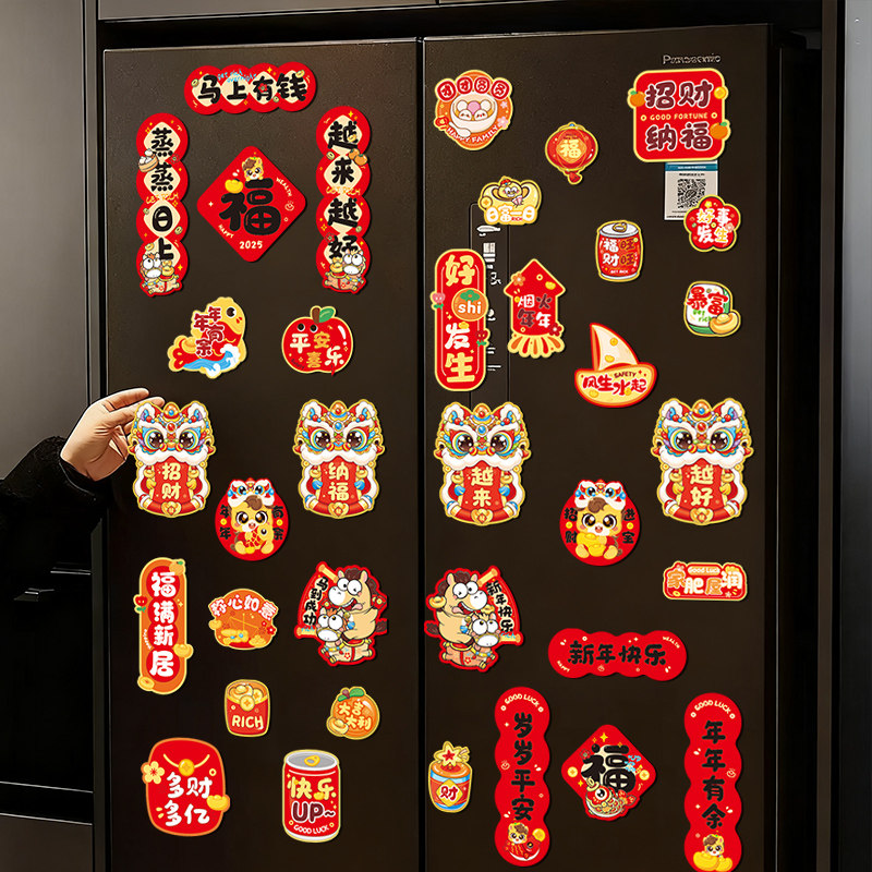 马年2026磁吸冰箱贴门贴春节过年场景布置创意福字对联新年装饰品