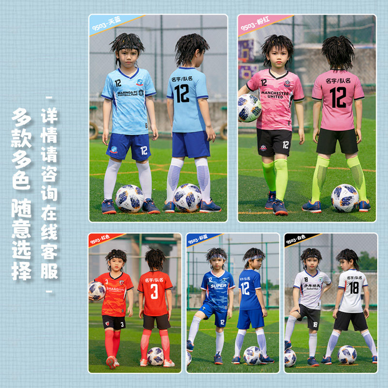 儿童足球服套装男童女童蓝色比赛定制训练运动服球衣