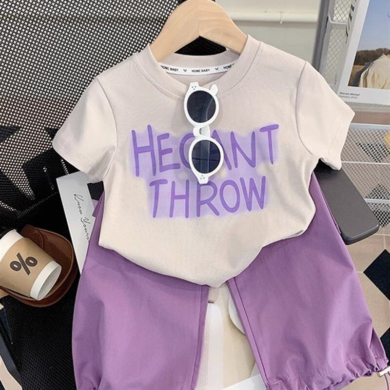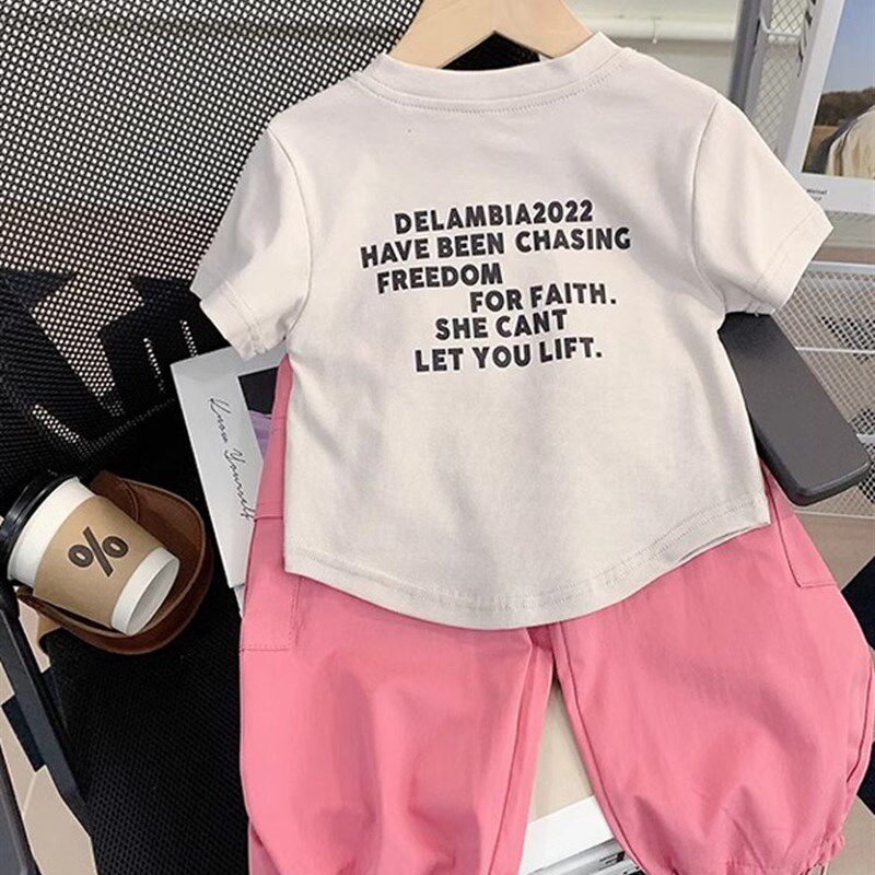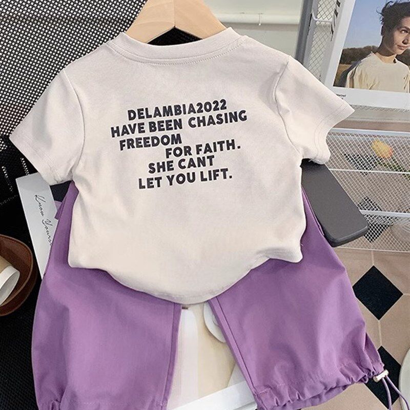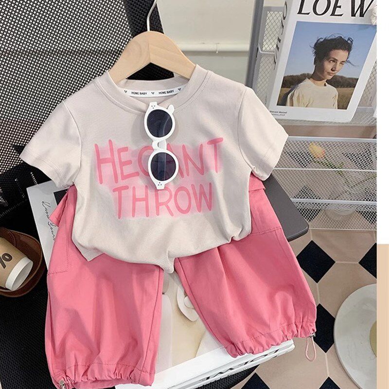 女童两件套纯棉短袖夏季运动T恤儿童洋气潮酷2025新款工装裤套装