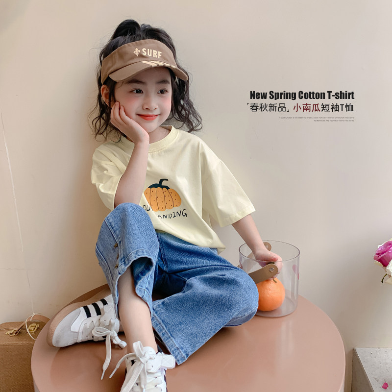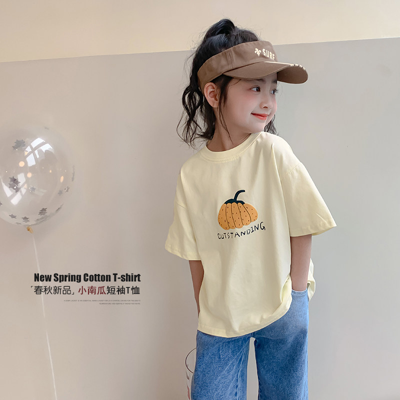 女童短袖T恤上衣春装2026新款洋气女孩纯棉半袖夏季童装儿童体恤