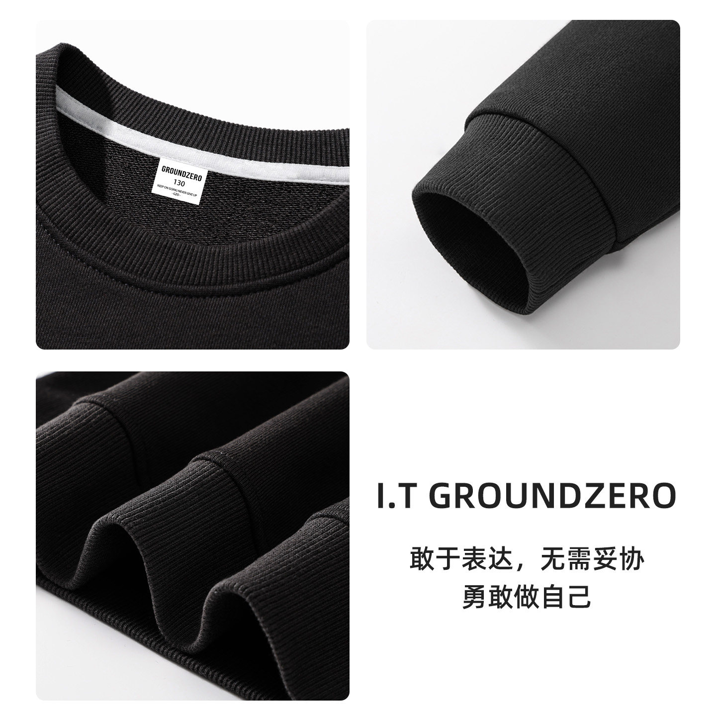 it GROUNDZERO女童卫衣黑色薄款2026新款儿童运动上衣春秋款学生T