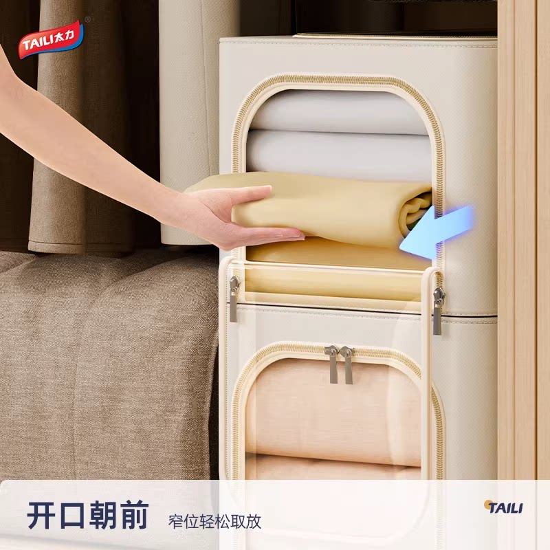太力窄款大容量收纳箱侧开可水洗布艺衣物家用被子衣服整理百纳箱