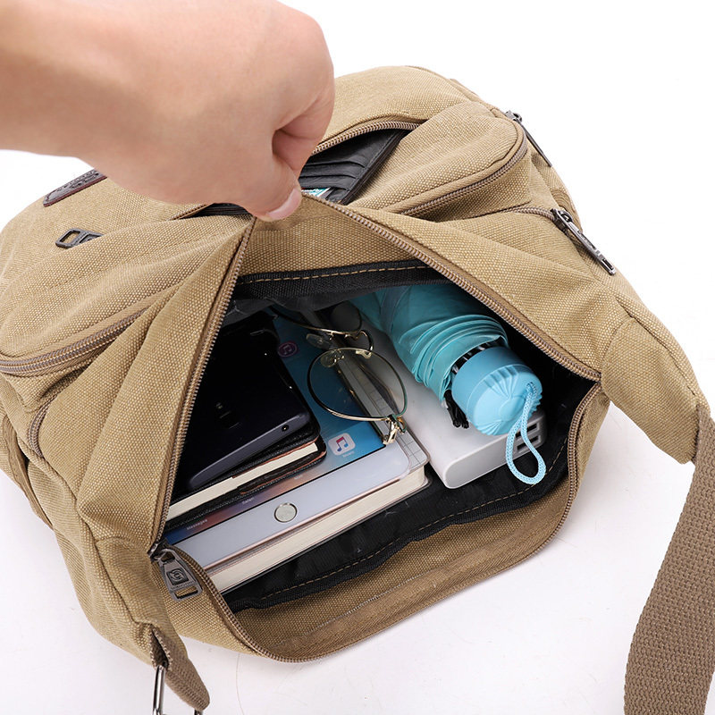 休闲帆布包 单肩包帆布斜挎包背包多层收钱包旅行挎包生意包男士