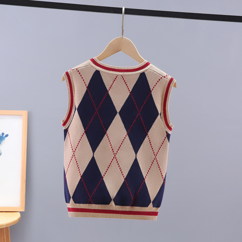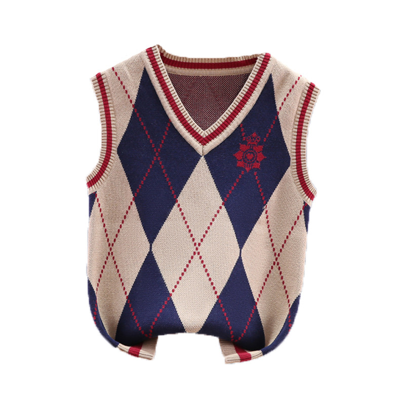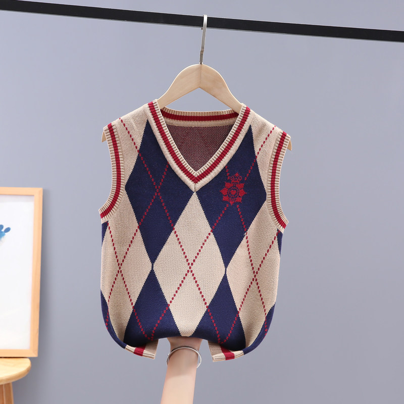 儿童马甲秋冬新款加绒加厚男童纯棉针织衫毛衣中大童学生背心校服