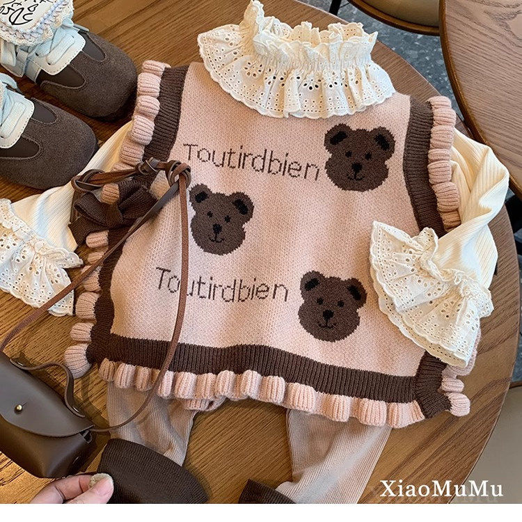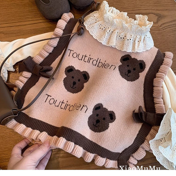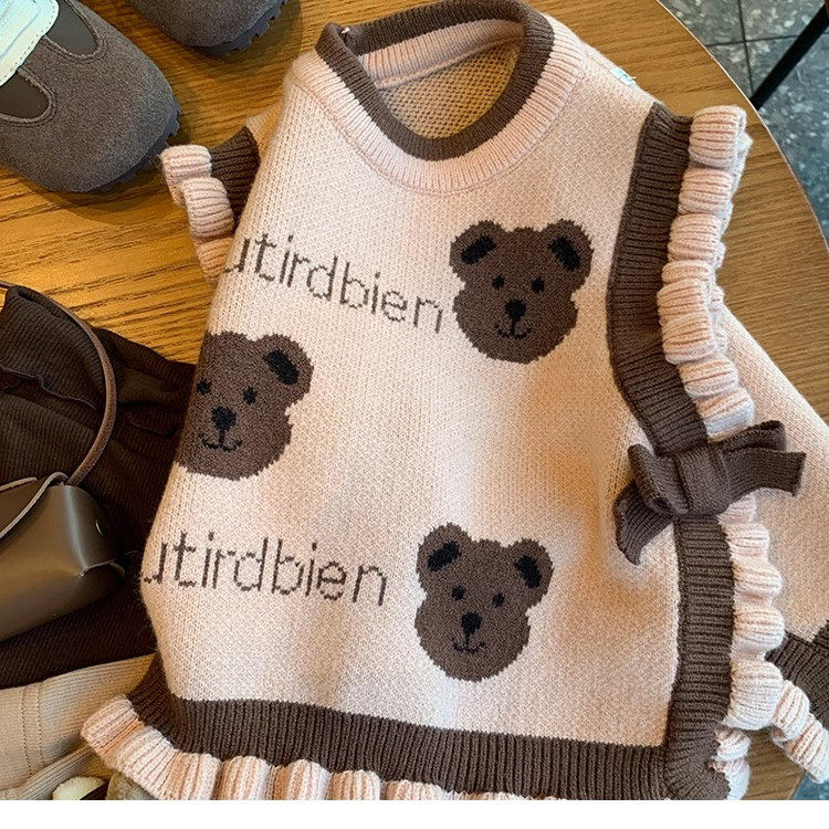 女童韩版毛衣针织背心马甲外穿春秋款2025新款儿童女宝洋气卡坎肩