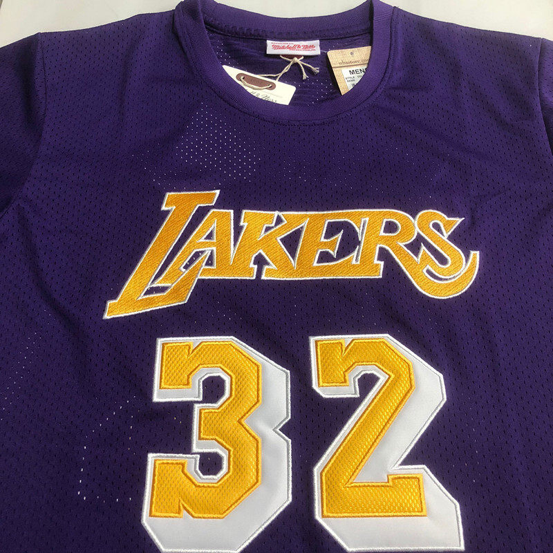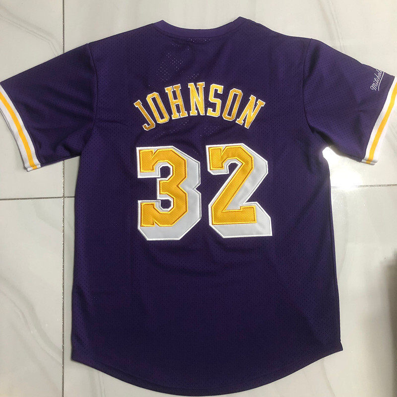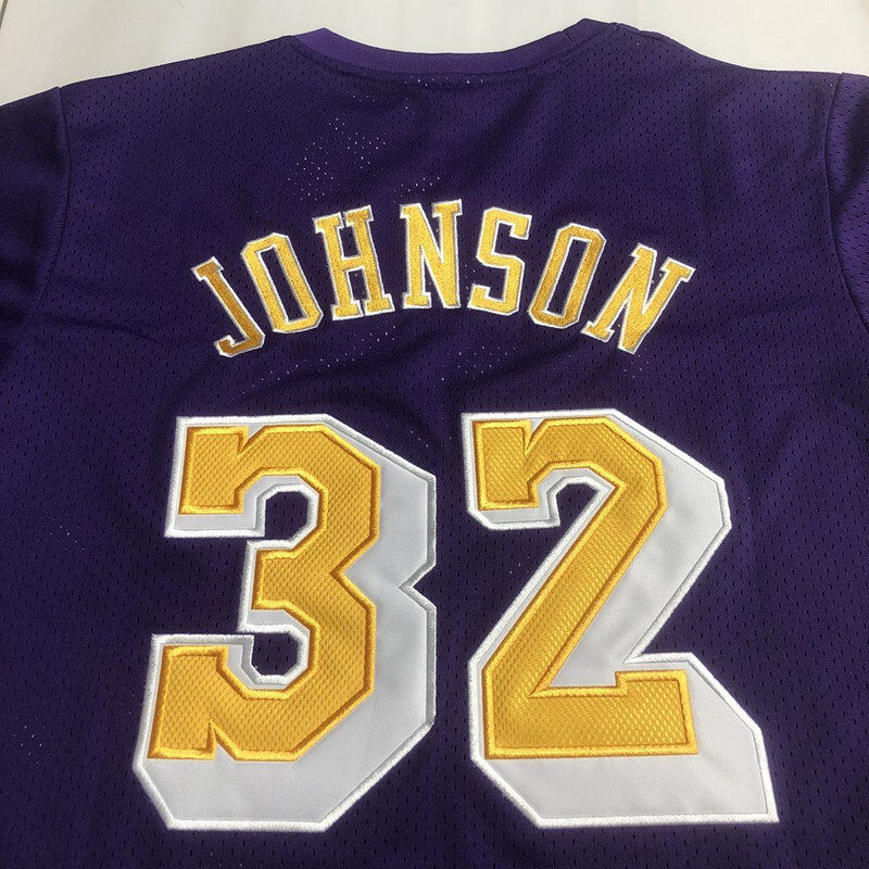 全刺绣美版湖人队32号约翰逊球衣复古紫色短袖网眼男女休闲篮球服