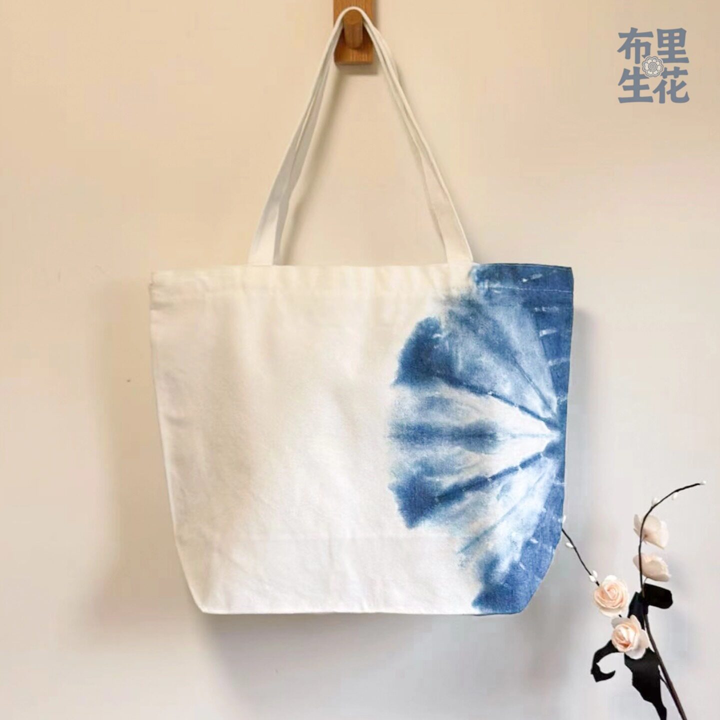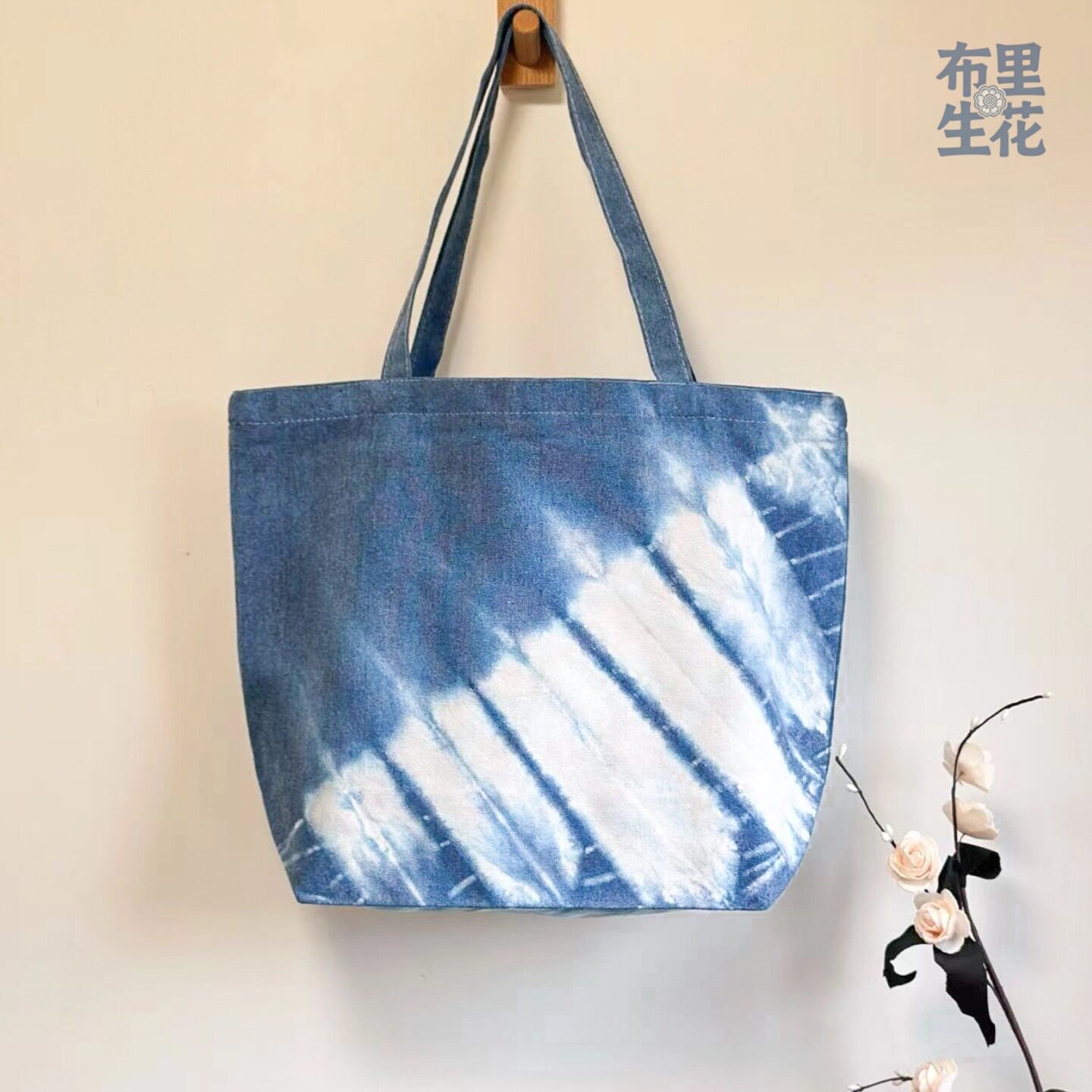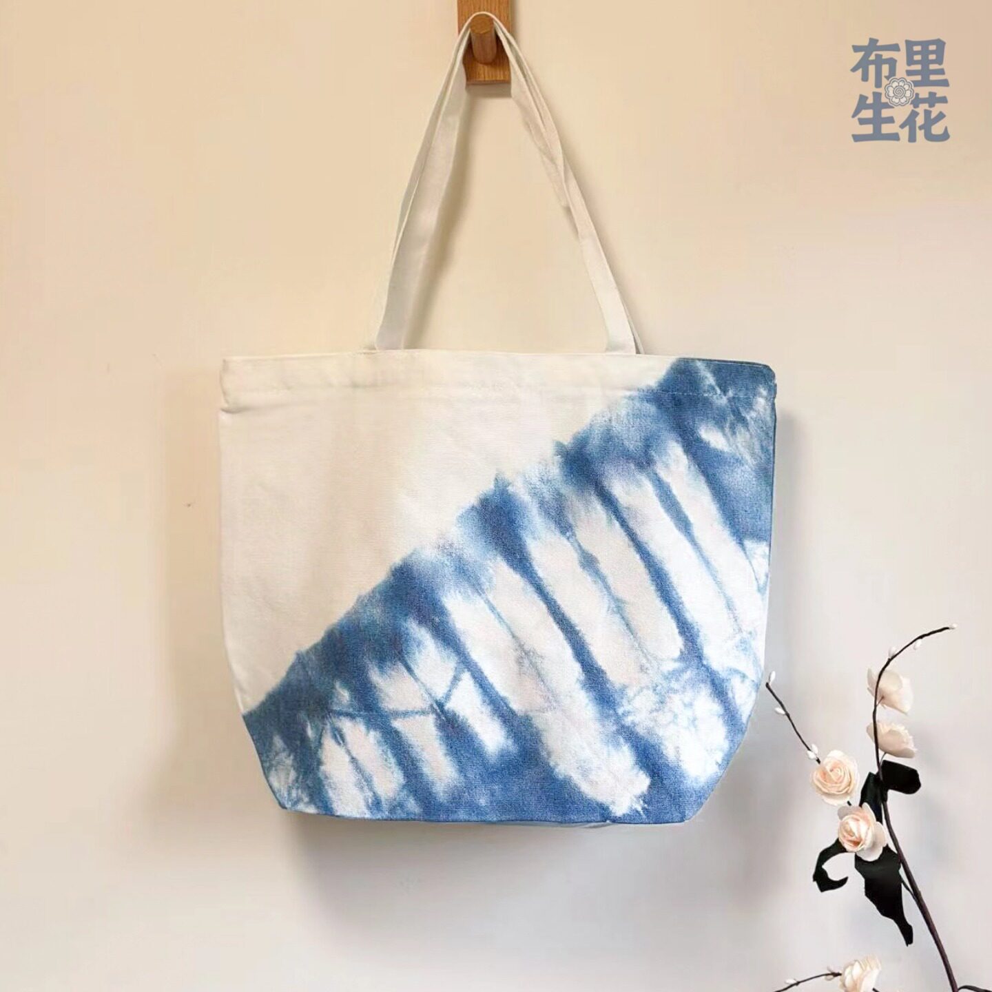 手工扎染帆布包带拉链内袋Ins风小众女通勤手提包大容量收纳包