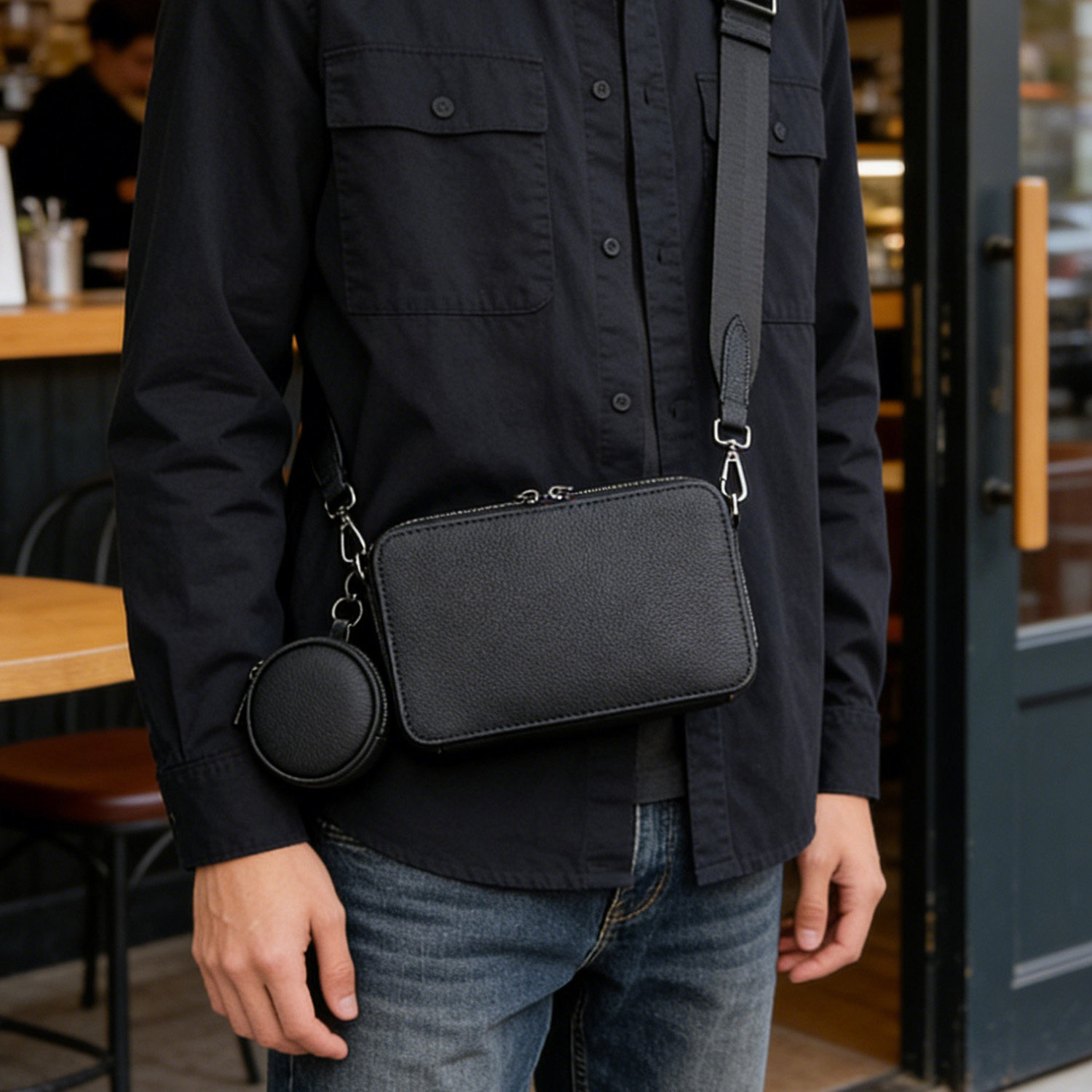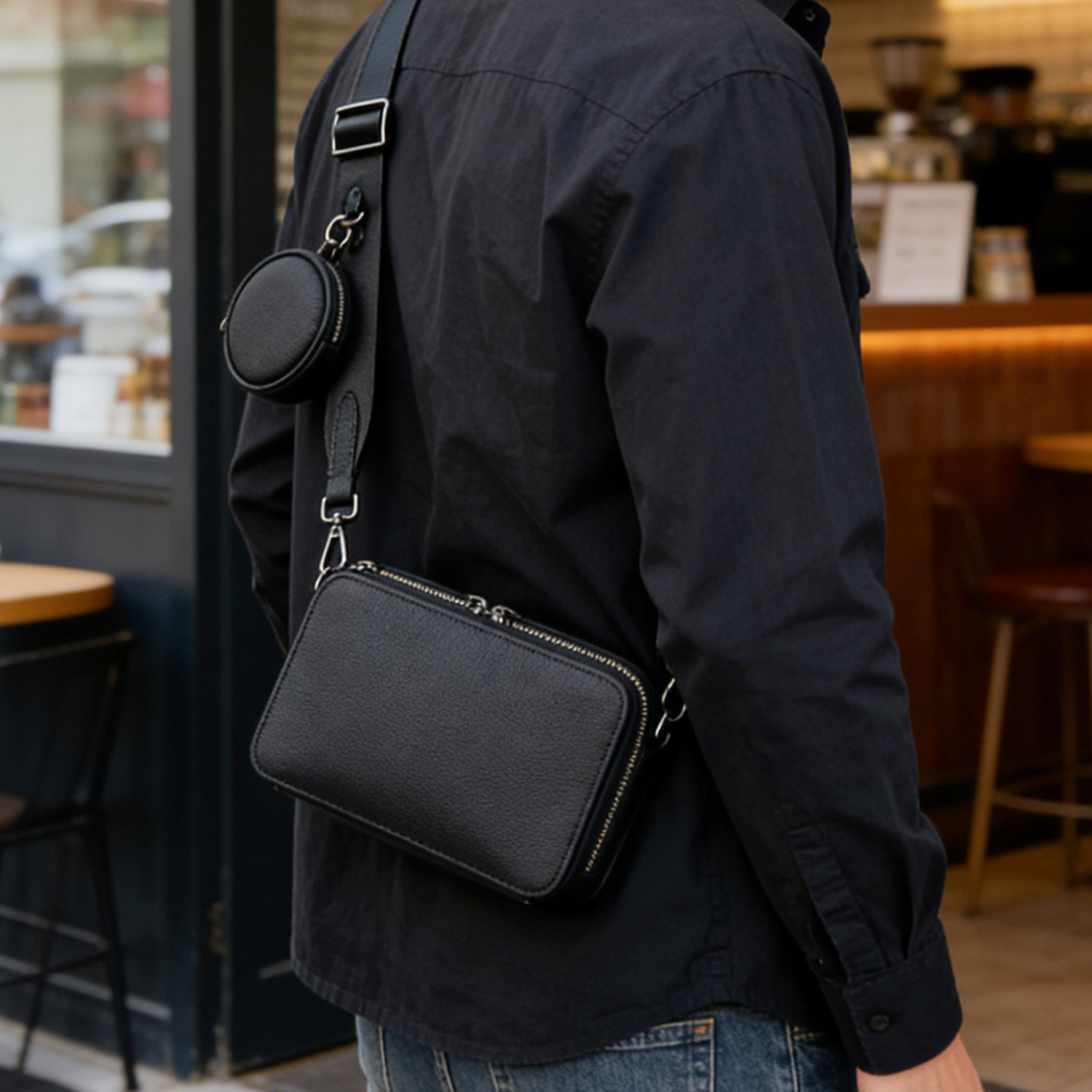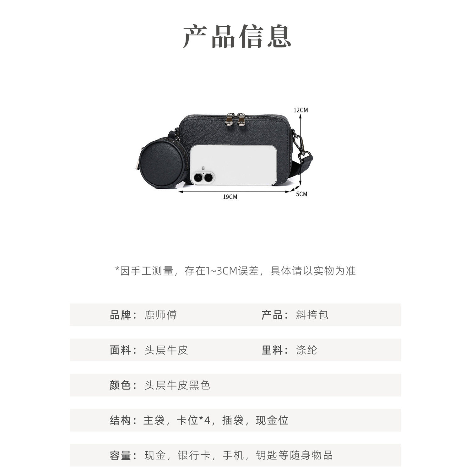 鹿师傅头层牛皮男士斜挎包真皮新款休闲通勤外出高级感小方包男包