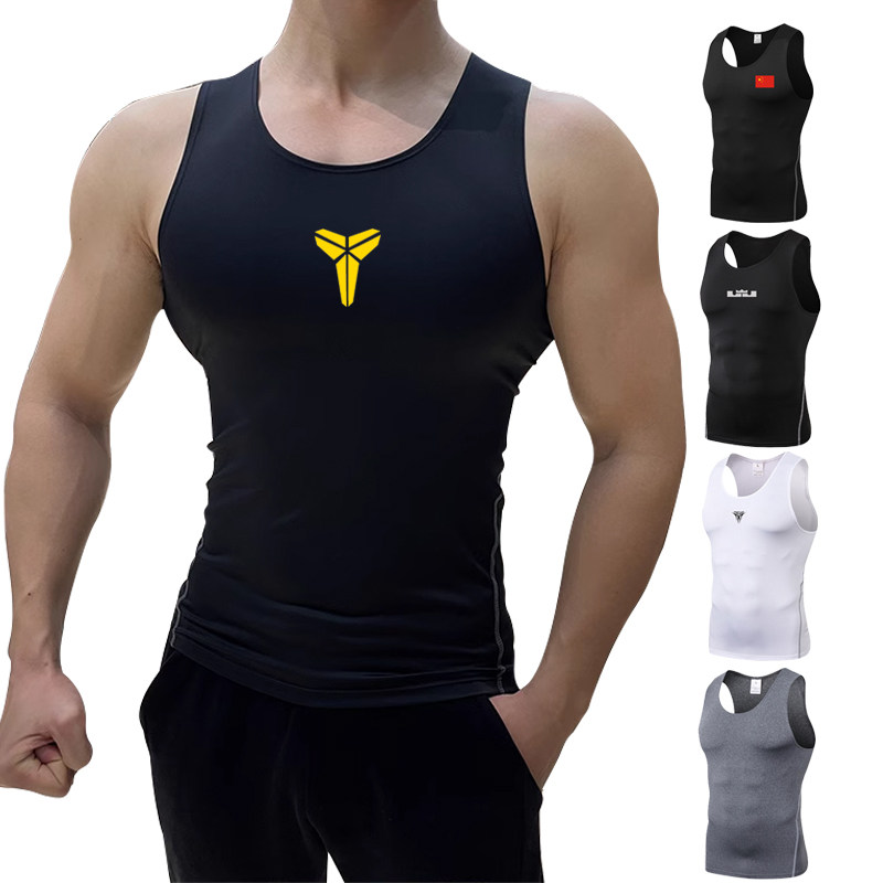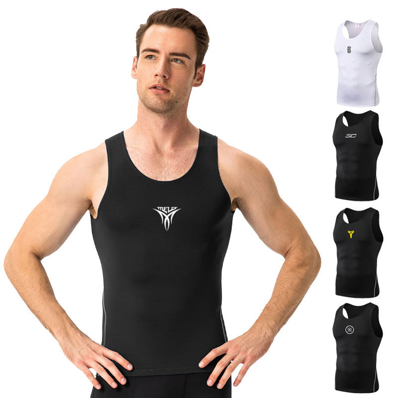 运动背心男速干高弹紧身衣健身衣服 篮球跑步训练无袖工字吸汗t恤