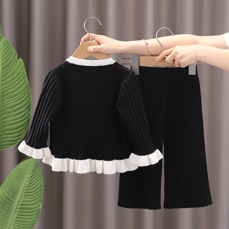 女童毛衣裤套装2024秋冬新款小香风针织两件套宝宝洋气上衣+裤子