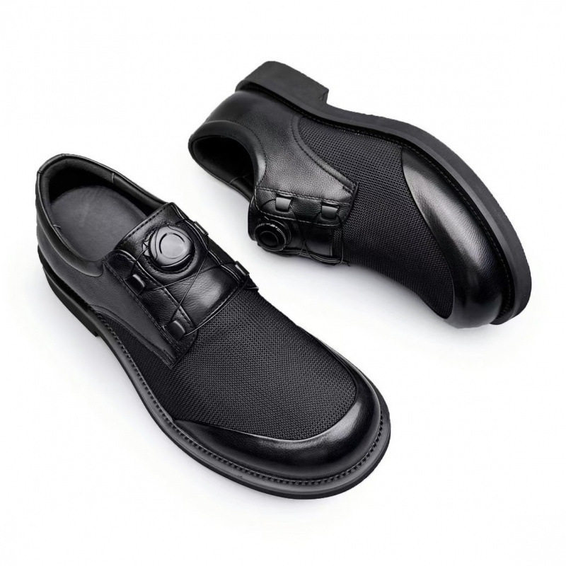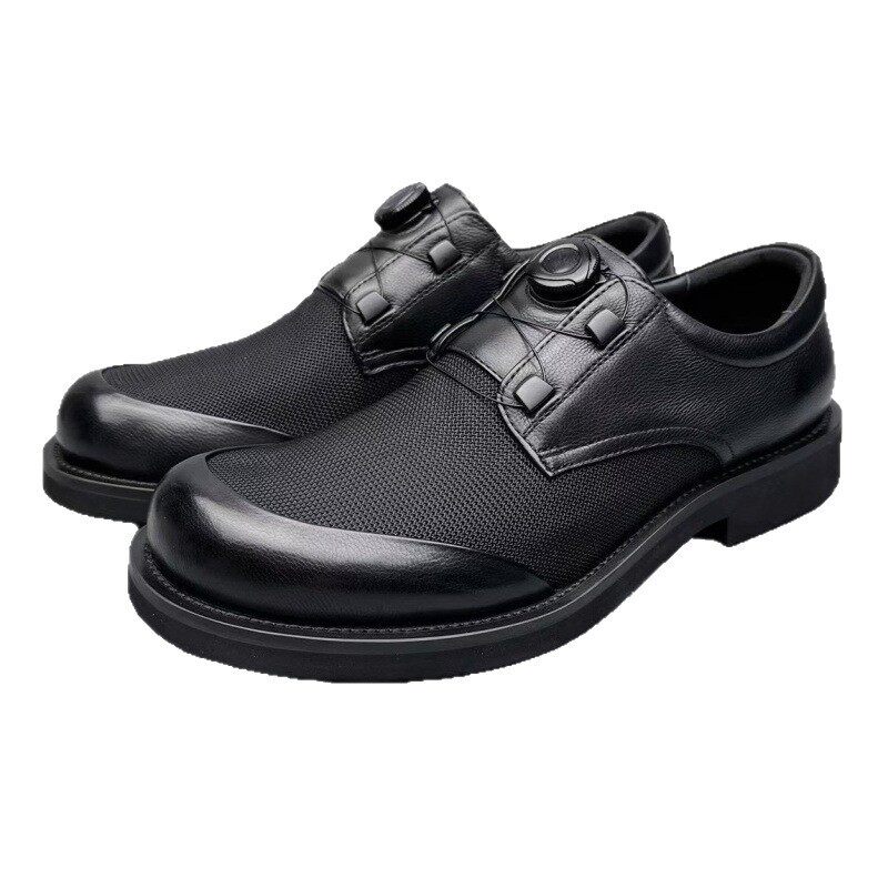 旋钮扣男鞋真皮牛皮网眼透气薄款网面男士商务软底休闲网布鞋子韩