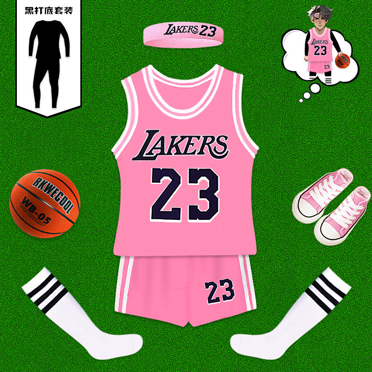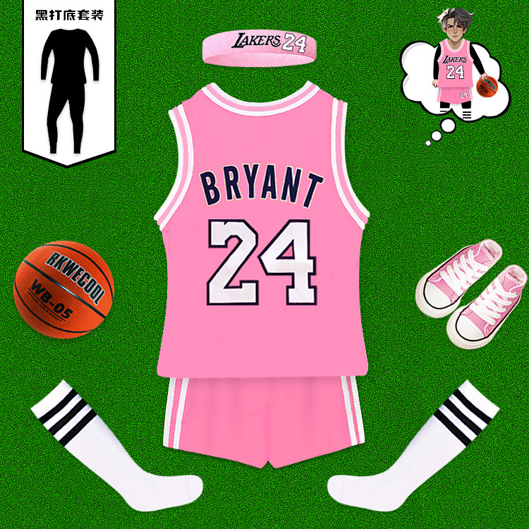 儿童篮球服套装男女童纯棉24科比粉色球衣春秋中小童国庆比赛训练