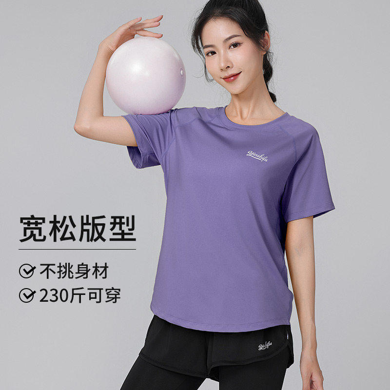 凉感运动上衣女大码跑步健身服宽松瑜伽服短袖t恤胖mm200斤普拉提