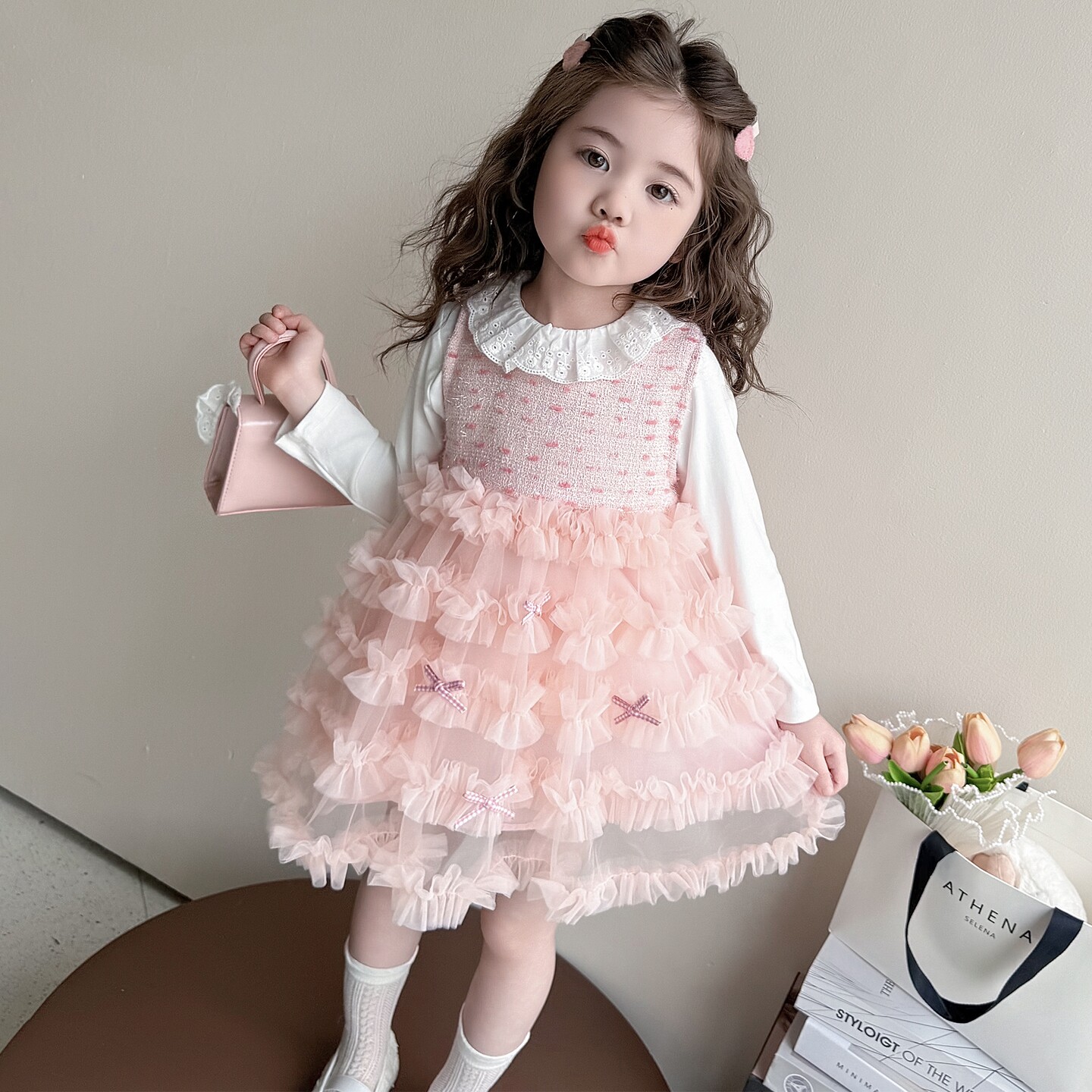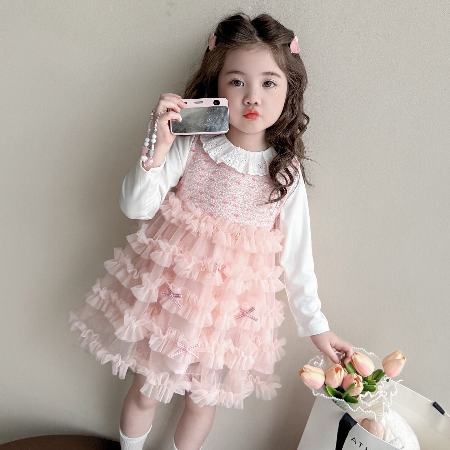 女童春秋款裙子春装2026新款儿童粉嫩春季连衣裙套装女宝宝公主裙