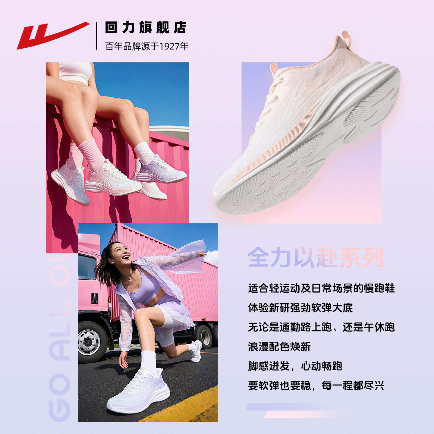 回力运动鞋女2026春夏耐磨止滑跑步鞋轻便减震回弹女鞋子初中学生