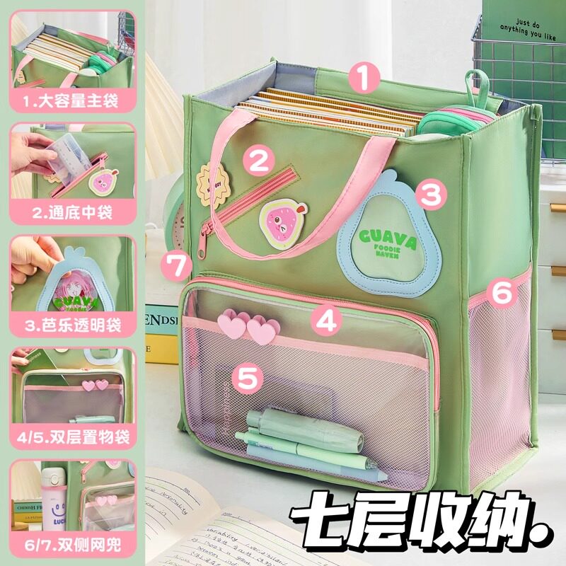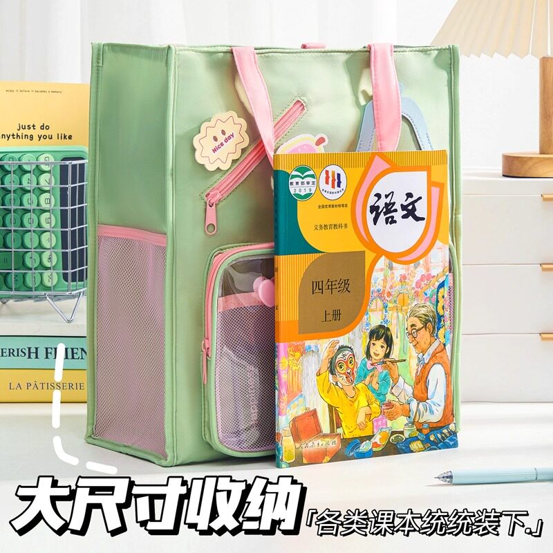 补习袋手提袋大容量拎书袋补课包小学生初中生专用作业收纳试卷资料袋儿童帆布文件袋女孩书包男生学习美术袋