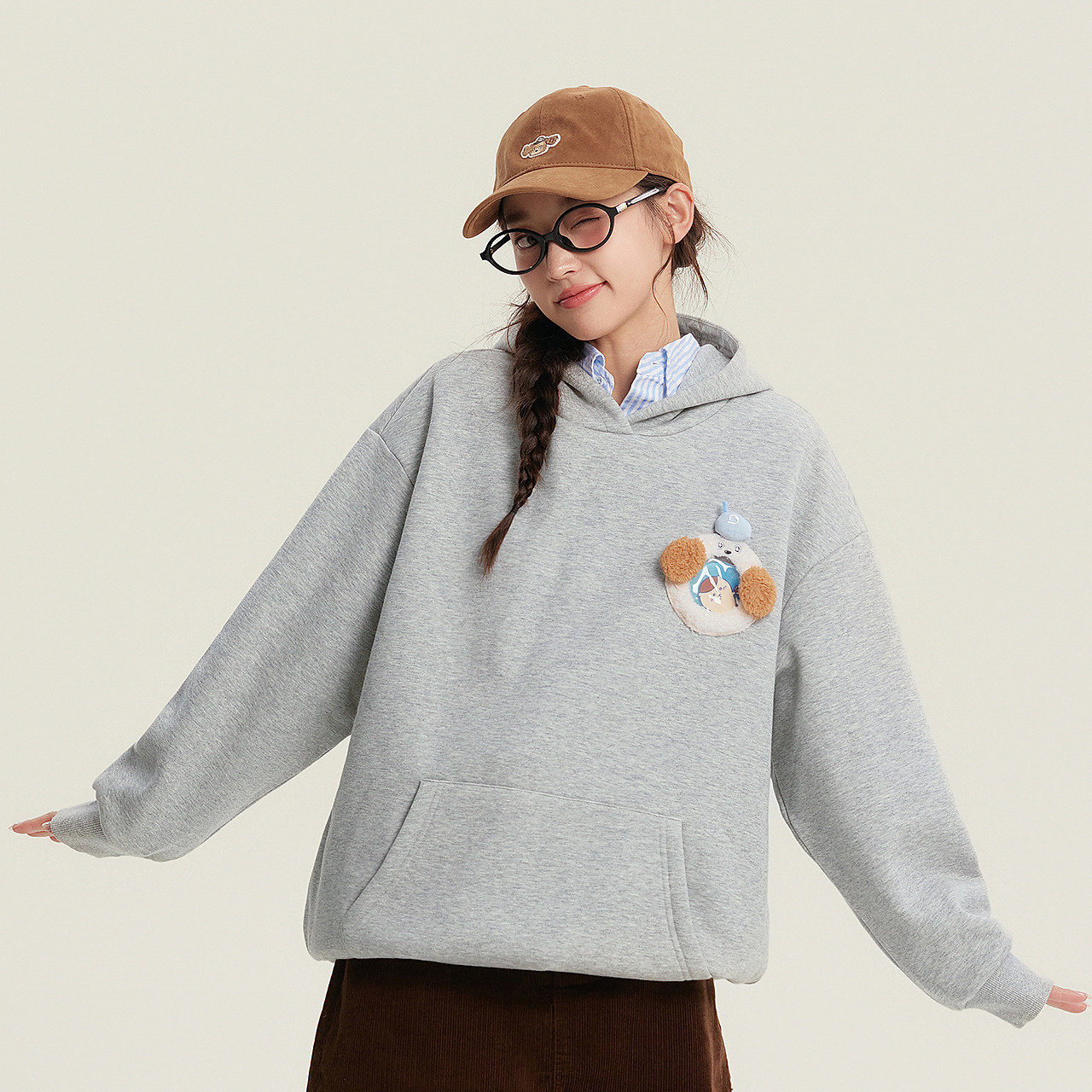 笛莎青少年初高中生2025秋冬新款加绒潮酷连帽上衣女孩子宽松卫衣