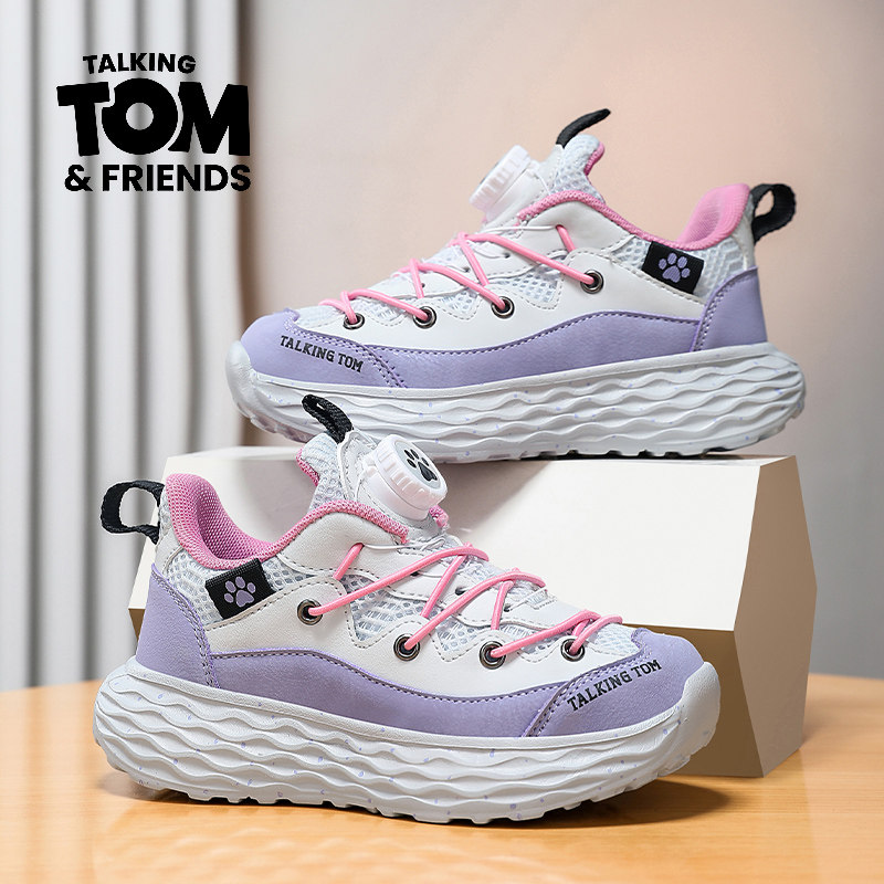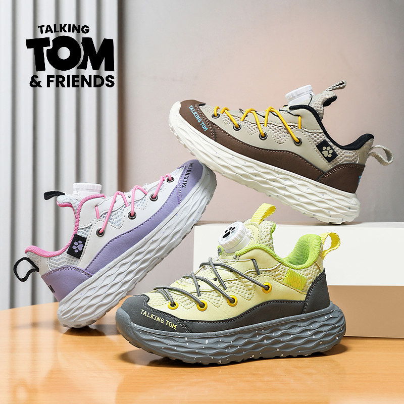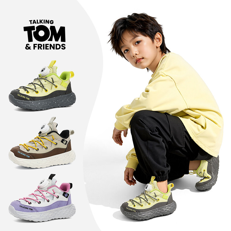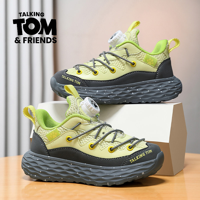 汤姆猫男童鞋子2026春秋新款男孩网面透气防臭轻便儿童纽扣运动鞋