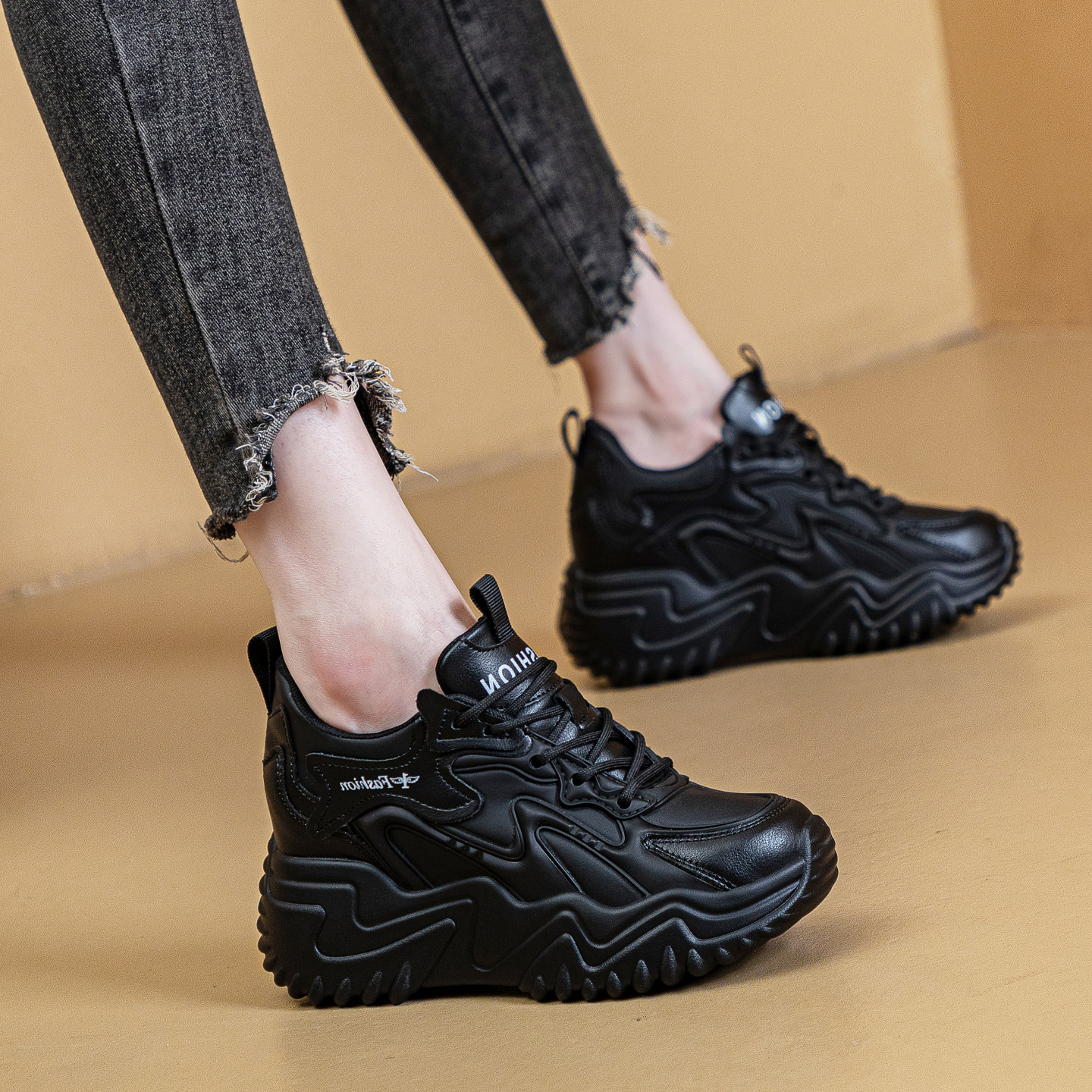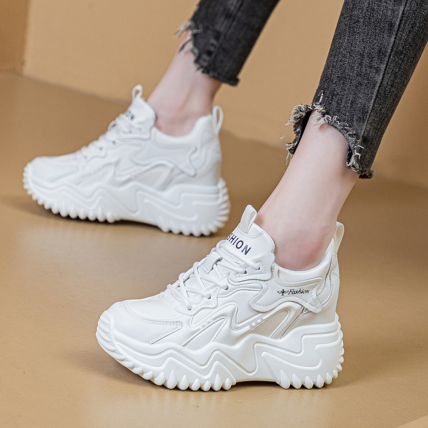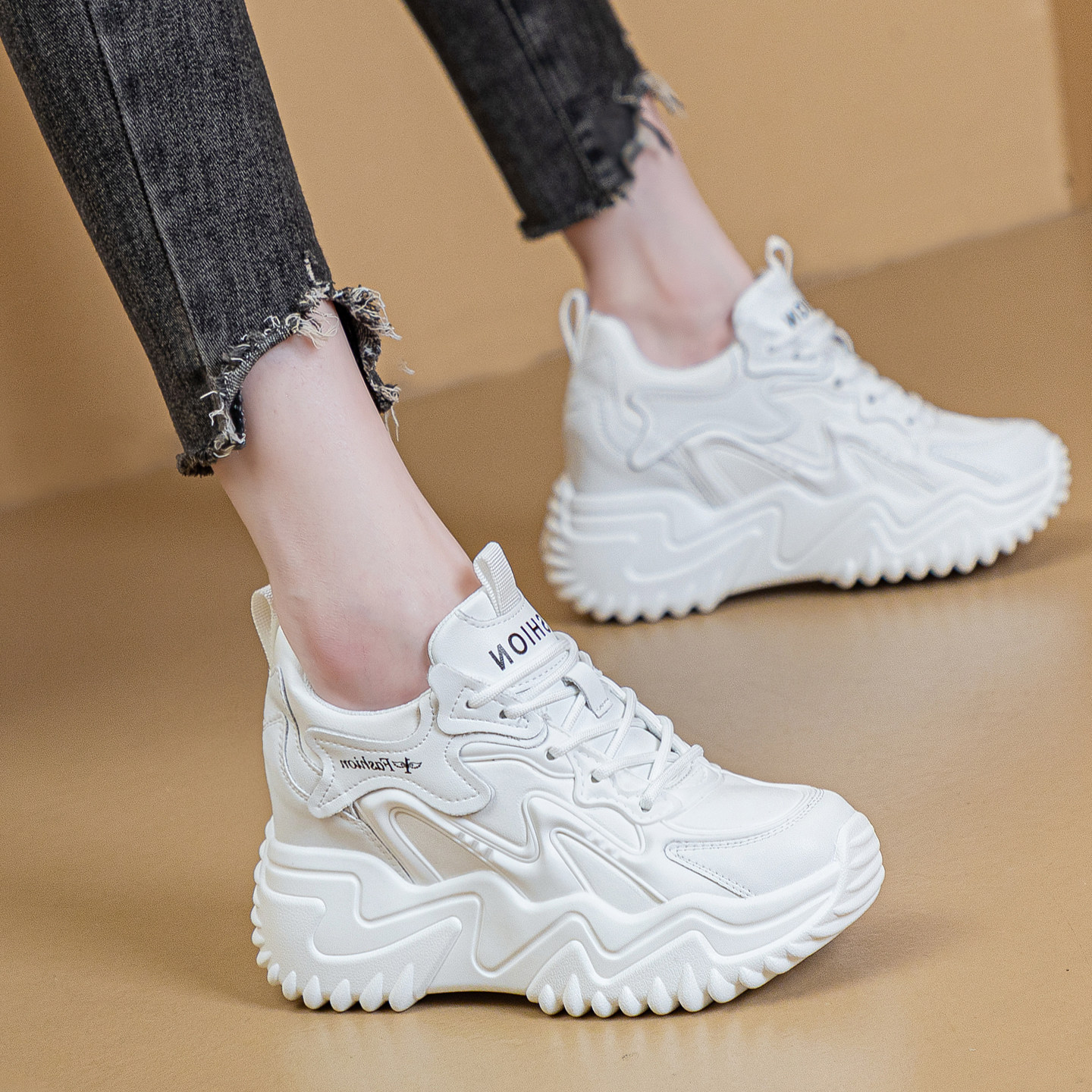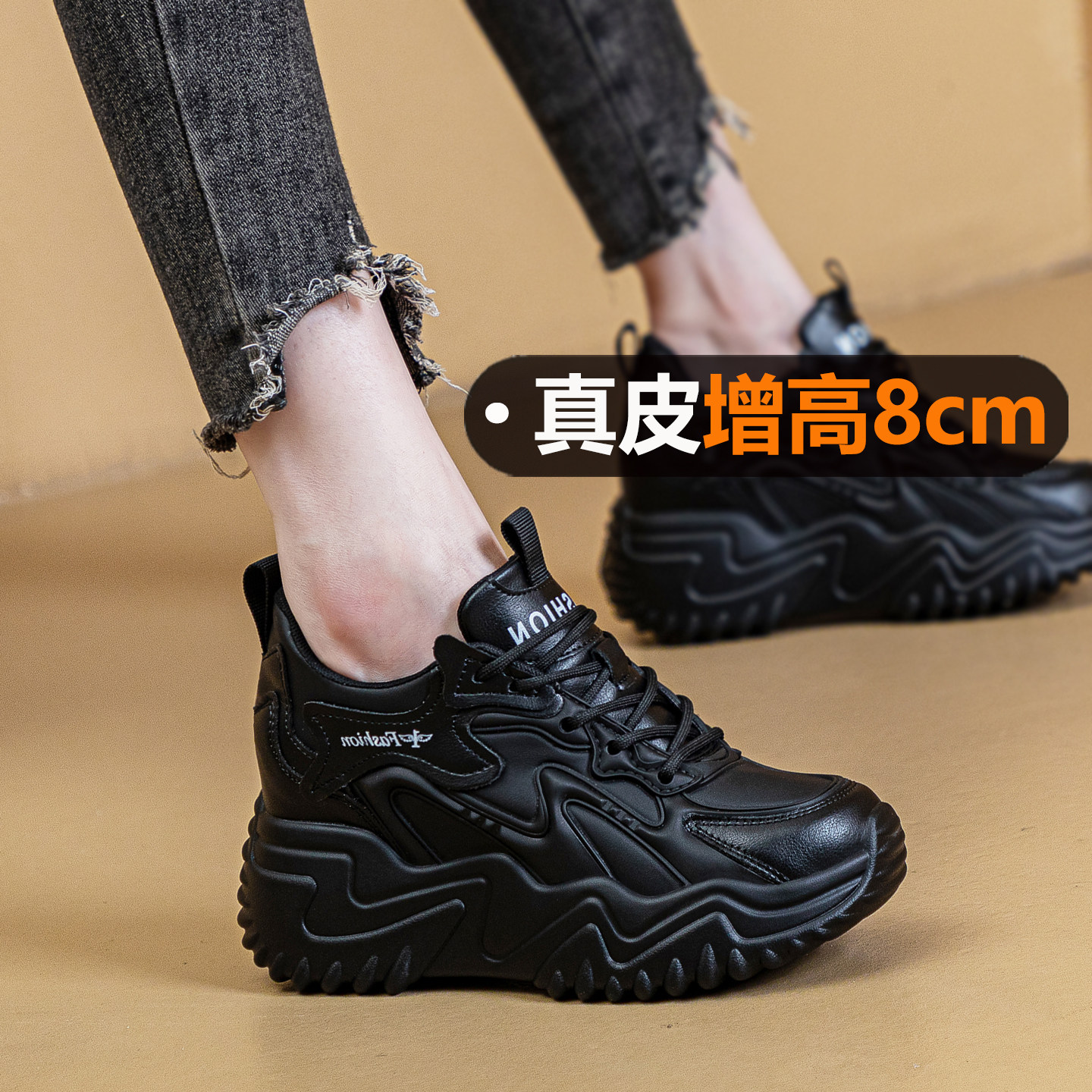 超轻皮面休闲运动鞋女内增高8cm软底老爹鞋2026春季新款防滑女鞋