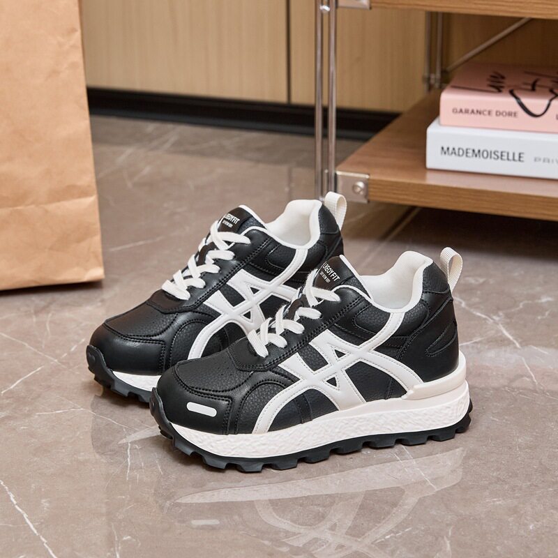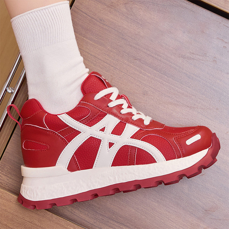 超轻软底不累脚女鞋厚底运动鞋8cm红色鞋子阿甘鞋德训鞋女内增高