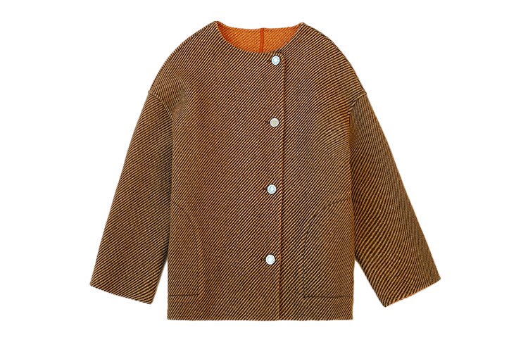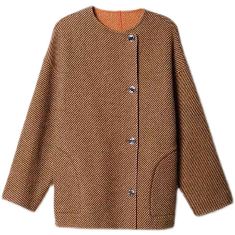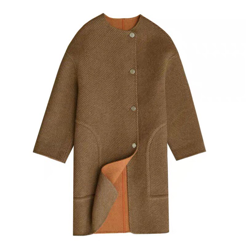 英淘 双面异色斜纹呢长款大衣女秋冬季新款保暖短款羊毛上衣外套